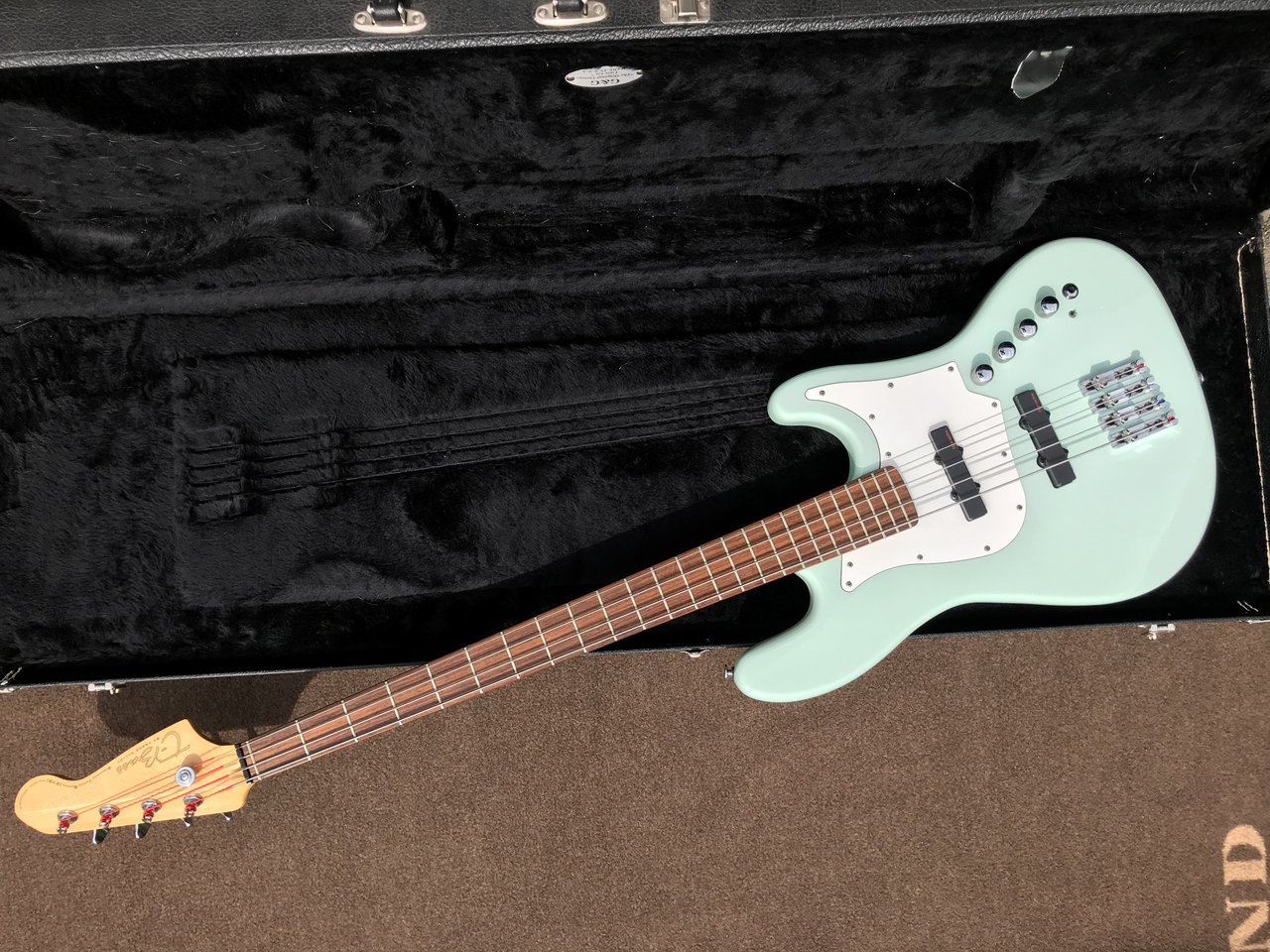 ich verkaufe aus einer Instrumentensammlung einen hervorragenden T•Bass von Trace Elliot, made in England. Die Farbe würde bei Fender Seafoam Green heißen. Der an den Jazz Bass angelehnte Custom Shop Bass hat 24 Bünde und ist sowohl passiv als auch aktiv spielbar, sein Ergonomic Tuning System ist zum Stimmen und bei einer Neu-Besaitung sehr hilfreich und angenehm. Der klare Sound dieses Basses ähnelt dem modernen Klang eines Fodera sehr, ich habe beide zum A-B-Vergleich bereitstehen. Der Bass kommt in einem Gigbag sicher verpackt.
