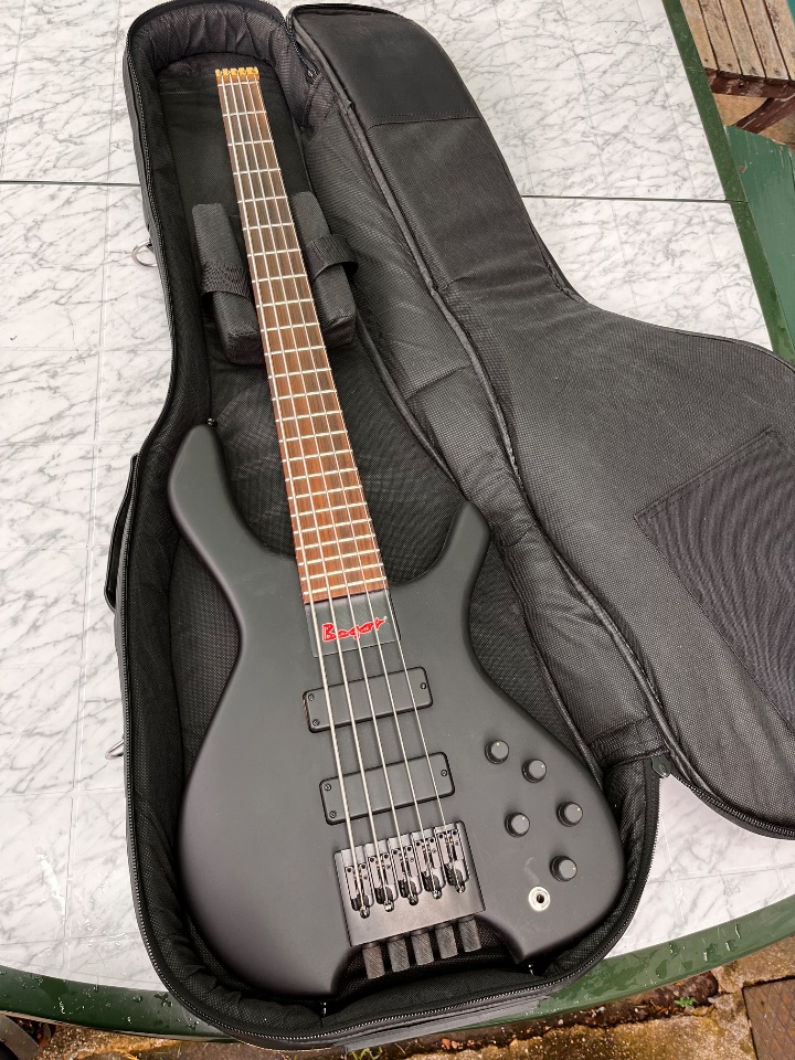 Ich spiele schon viele Jahre Bogarts und habe noch einen 4-Saiter und einen anderen 6er. Der Bass um den es hier geht, ist ein MediumScale. Double Ballend und „normale“ Klemmaufhängung. Auf der Vorderseite hat der Bass minimale Spielspuren. Matt ist nie ganz ohne.Stefan Hess Homepage Text.