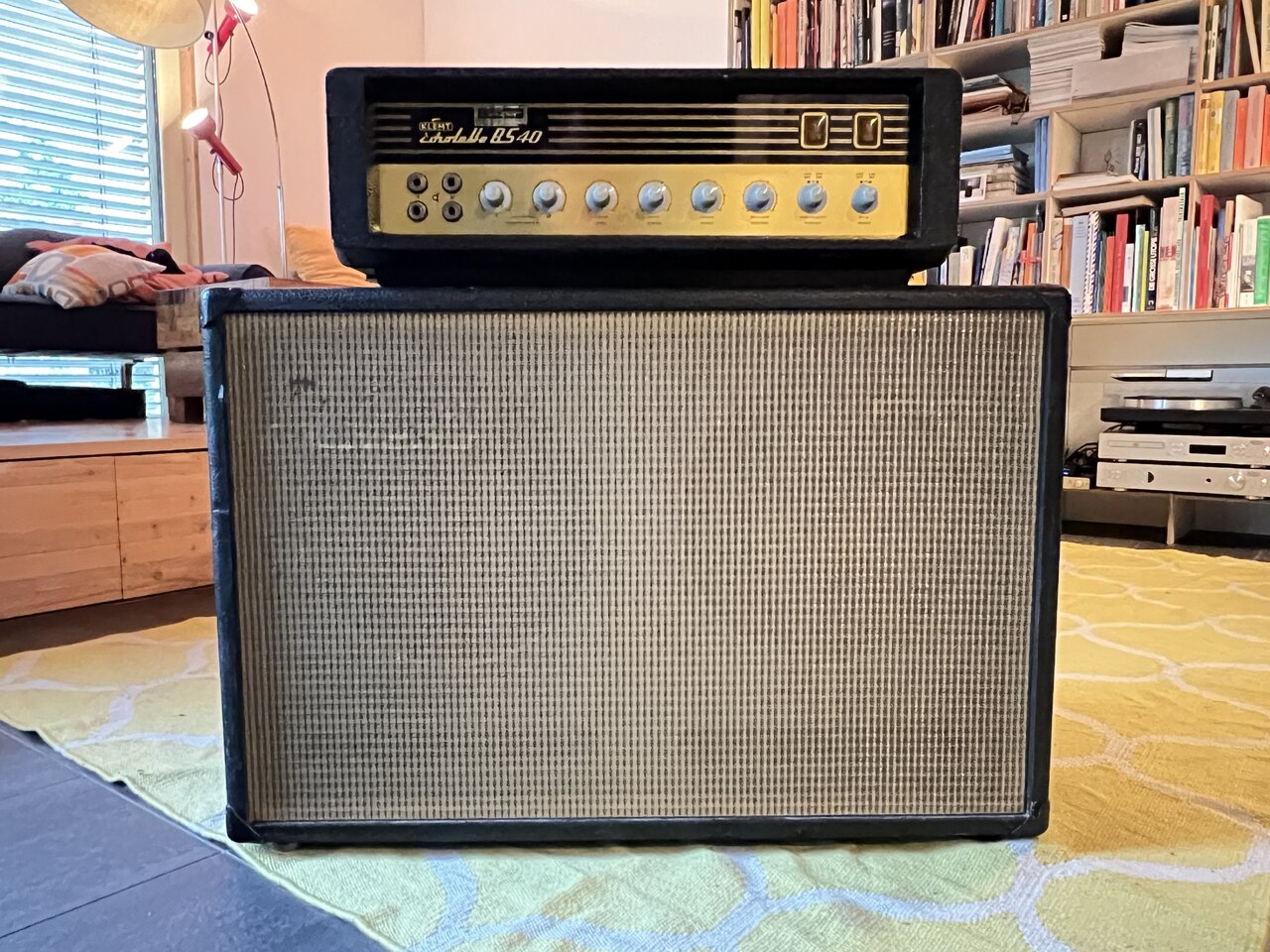 Ich verkaufe hier einen Echolette BS40 mit passender Box dazu. Die Anlage funktioniert prinzipiell, die Potis kratzen allerdings zum Teil. Ich schätze, der Verstärker stammt aus Ende der 1960er Jahre und bedarf sicher einer Überholung. Daher versuche ich auch nicht, einen Maximalpreis herauszukitzeln. Die Anlage habe ich damals als Jugendlicher Anfang der 1990er Jahre vom Dirigenten unserer Bigband bekommen, der ihn selber vorher gespielt hatte. Auf den Fotos sieht man oben auf dem Gehäuse eine Brandspur, wo vermutlich die Zigarette abgelegt und vergessen wurde. So war das früher vermutlich, Rock'n'Roll eigentlich mehr. Deswegen kann ich auch nicht guten Gewissens "aus tier- und rauchfreiem Haushalt" sagen.
