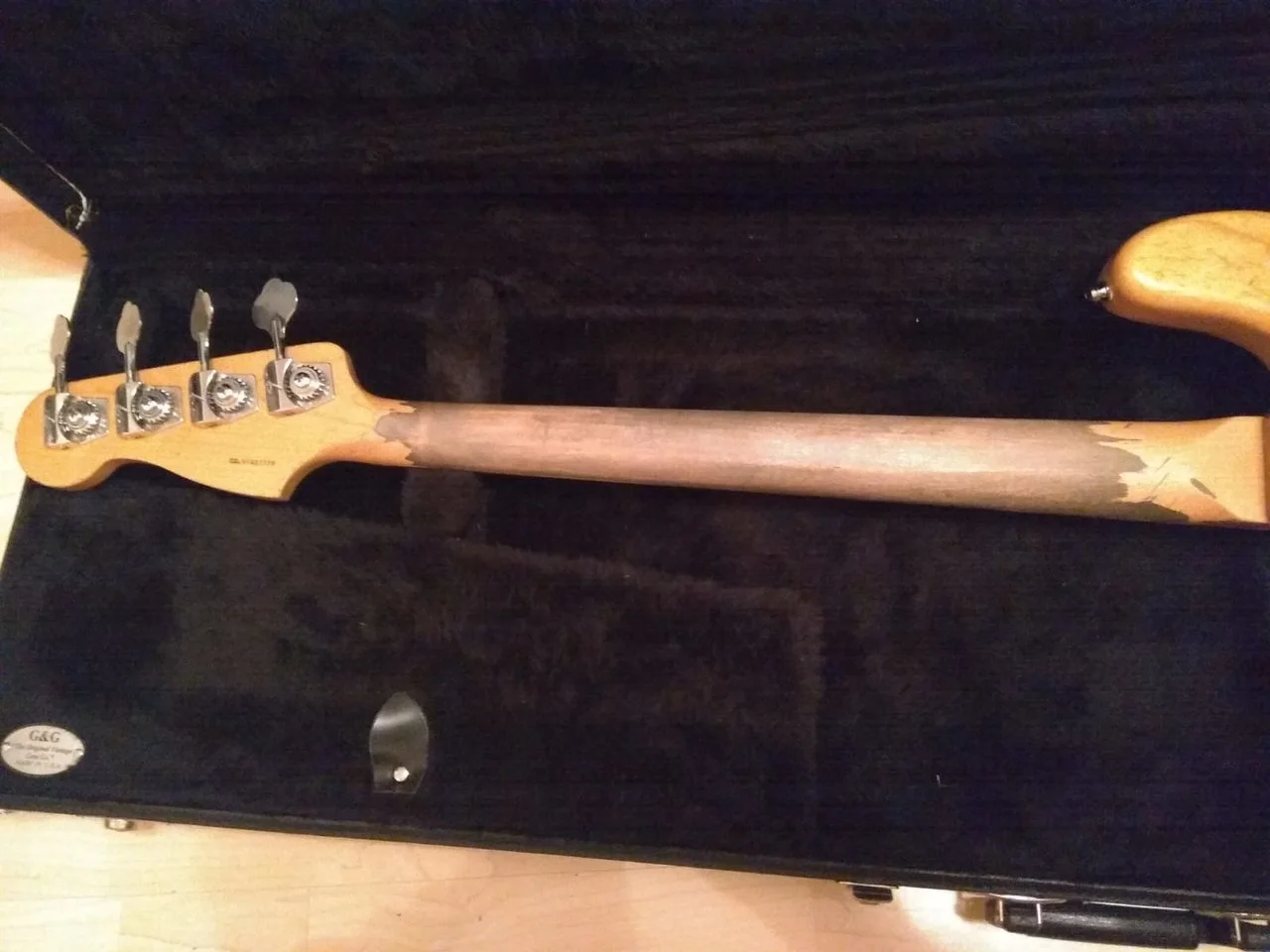 Look: Professionelles Aging von Hals, Griffbrett, Headstock und Mechaniken vorgenommen von Matthias Meyer (Bass Art Guitars Braunschweig)