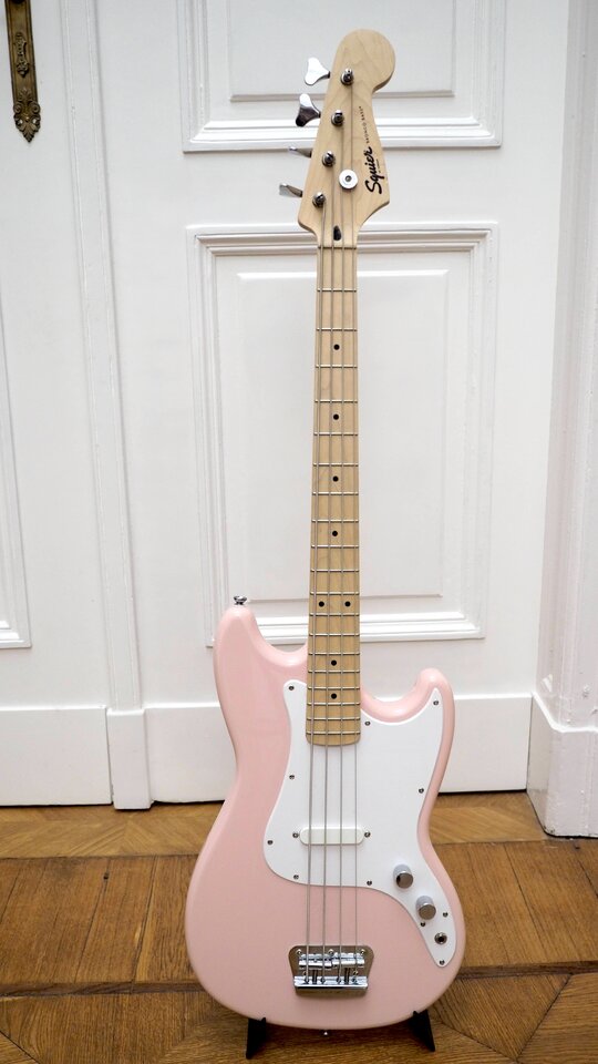 Hier ein Squier Bronco Bass aus der schönen ersten ShellPink Sonderserie von 2020. Im Originalzustand ohne Blessuren. Lediglich ein paar Abriebspuren an Pickguard und Pickup.