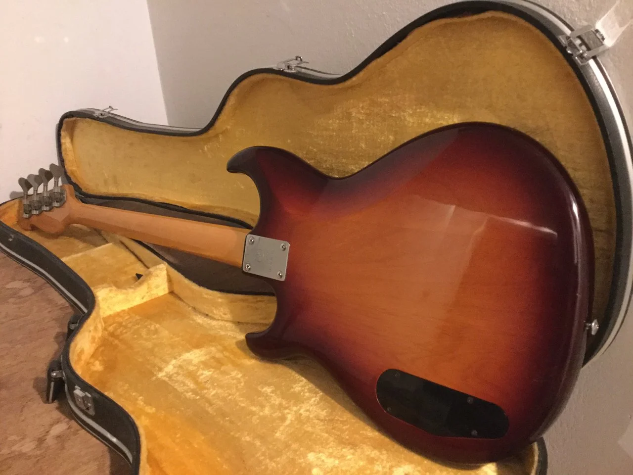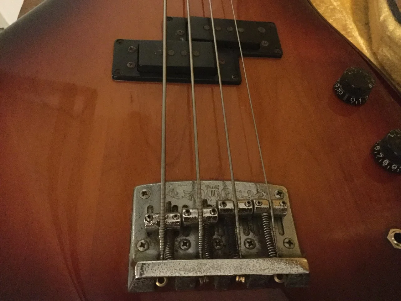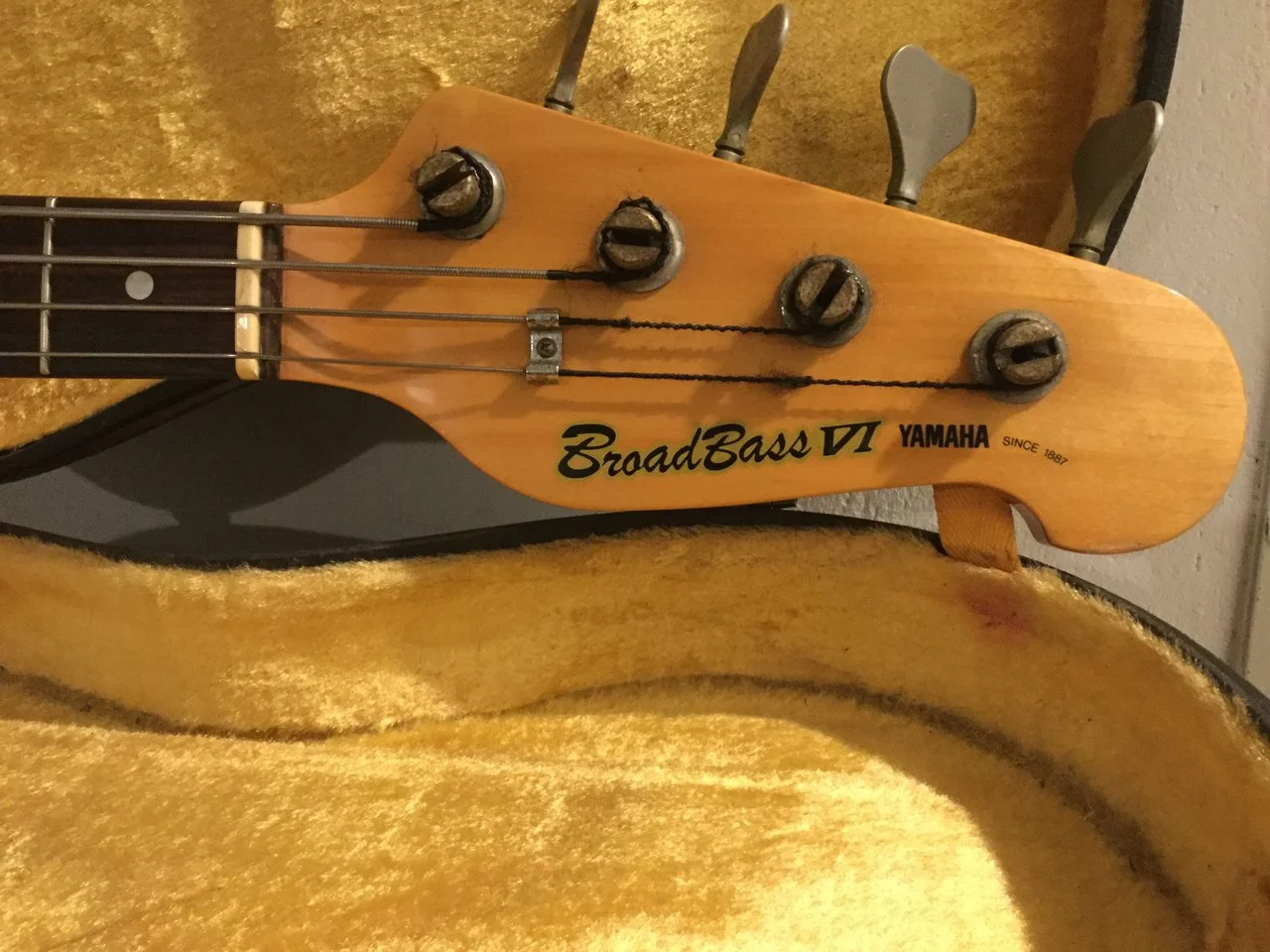 Hier kommt mein cooler Yamaha Broad Bass aus den 80‘ern mit dem reversed Precision Pickup in wunderschönem Sunburst.