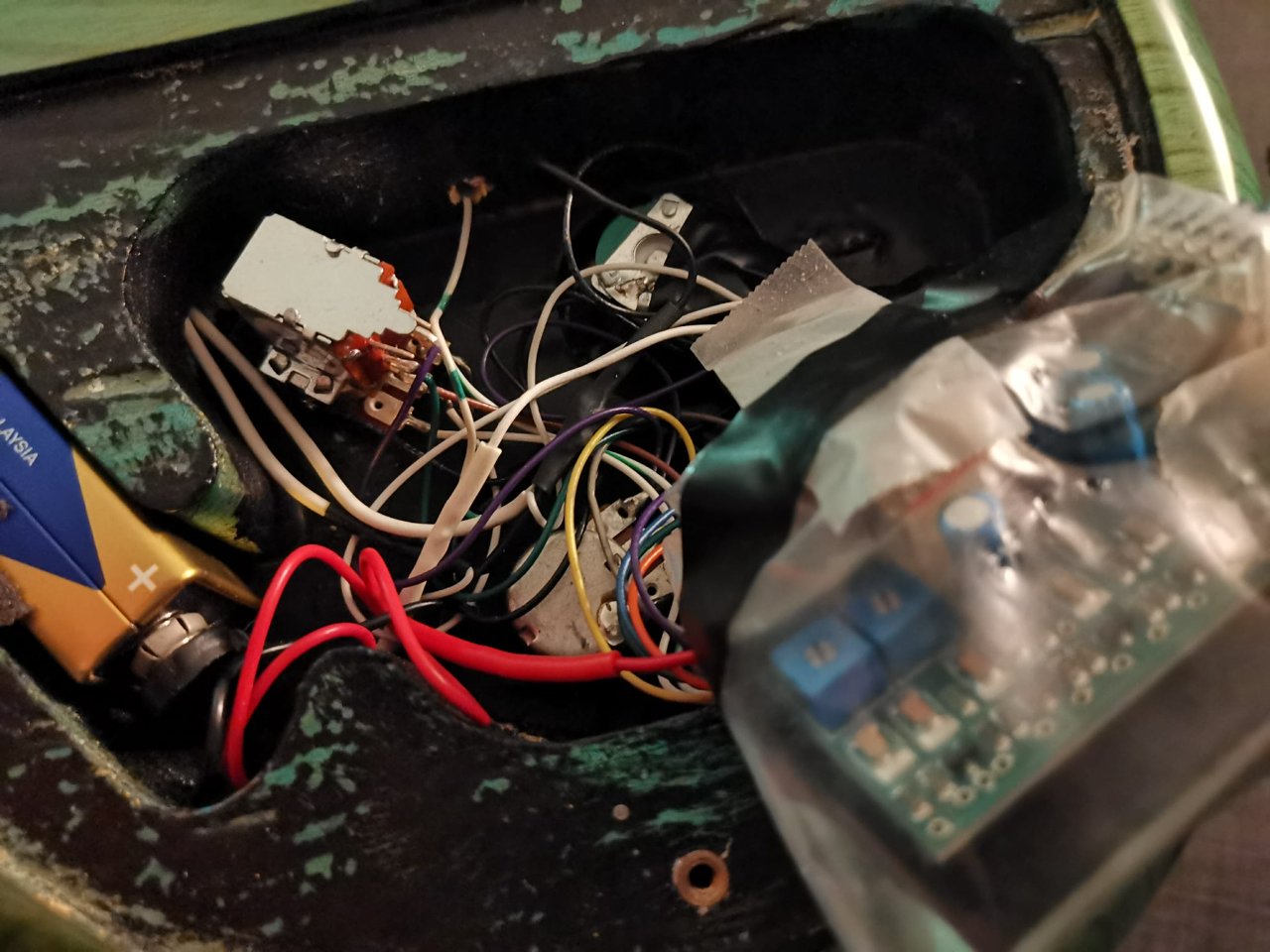 Laut Vorbesitzer gab es wohl eine zweitauflage dieses Modells mit anderer Elektronik, was ich allerdings nicht wirklich glauben kann, weil es keinerlei Infos dazu gibt. Wie dem auch sei - auch wenn die Knobs und die Elektronik nachträglich geändert worden sind, so sieht das alles tatsächlich aus wie original so verbaut. Eines ist jedenfalls sicher : Diese Elektronik ist qualitativ noch besser als die Alte und bietet auch mehr :