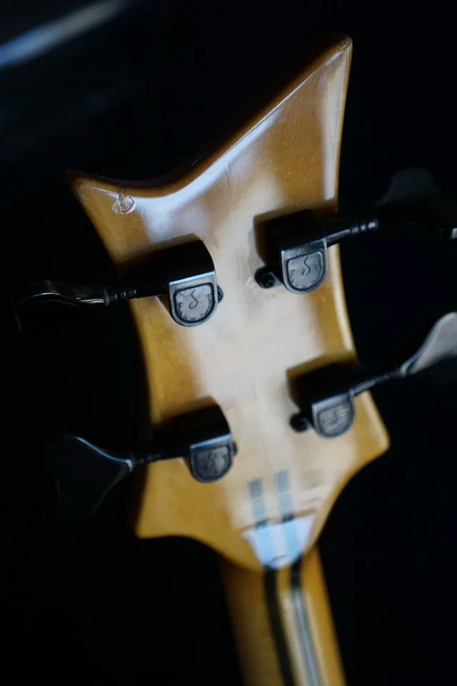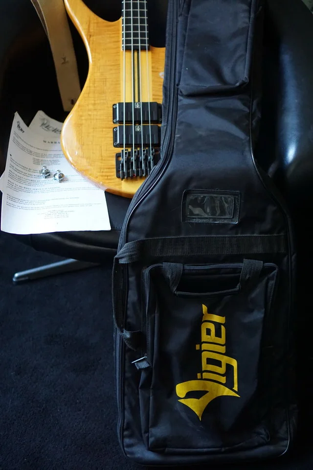 Mit dabei etwas ramponierte Tasche, Bulls Gurt, Schaller Mechaniken in Silber und Dokumentation.