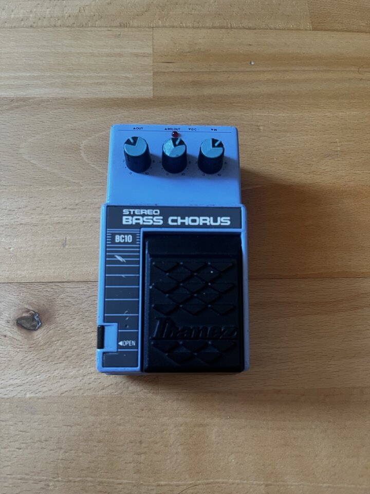 Biete hier einen alten Ibanez BC10 aus den späten 80er Jahren an. Meiner Meinung nach ein übersehener alter Bass Chorus. Vor allem die Möglichkeit, die Delay-Zeit verstellen zu können eröffnet viele coole Möglichkeiten. Das Fundament erhält der BC10 auch super. Hatte ihn einige Monate lang auf dem Pedalboard, weil er schön post-punkig und ein wenig klarer klingt als der CE-2b, den ich sonst benutze. Nun darf er aber gehen. Funktioniert super, hat logischerweise ein paar kleine Schrammen aber ist sonst in gutem Zustand. Potis und Buchsen knarzen nicht.