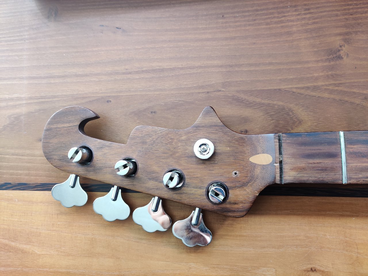 Ein Vollpalisanderhals dessen Kopfplatte modifiziert wurde. Ich habe den Hals schon so gekauft, weil die Kopfplatte mich ein wenig an den BEAK Head beim Buzzard erinnert.