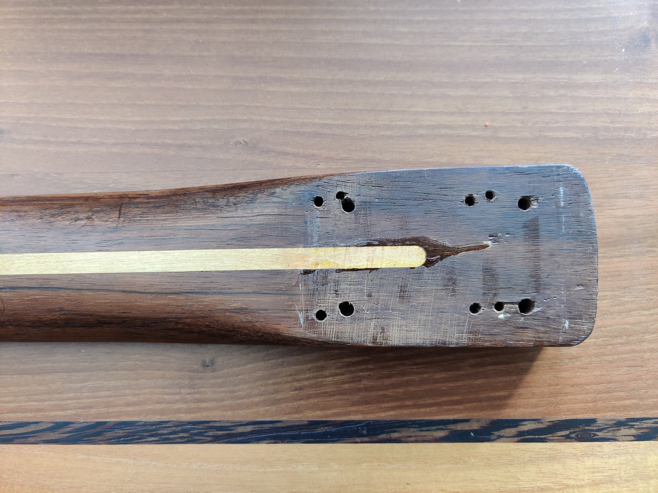 Die Mutter vom Trussrod ist abgerissen und der Sattel fehlt, daher wird der Hals ausdrücklich als defekt verkauft.