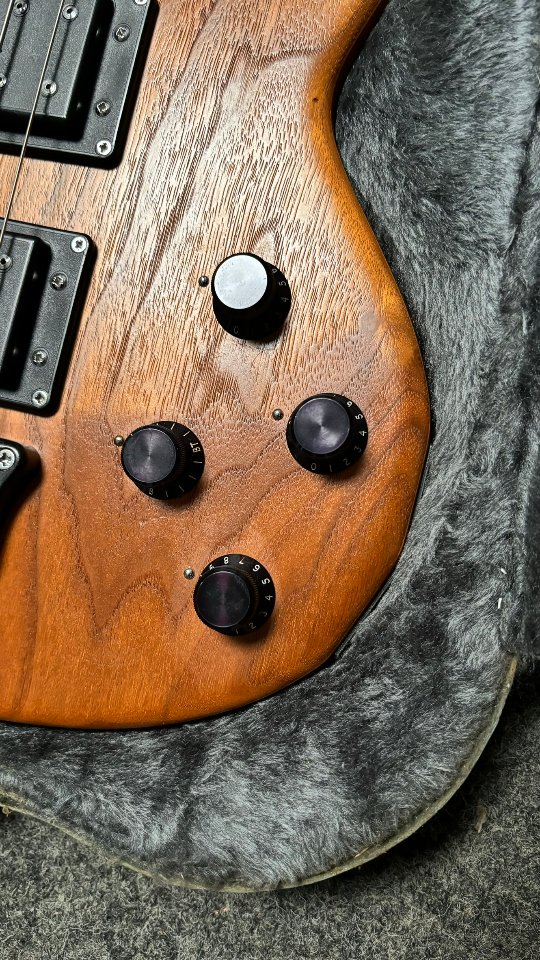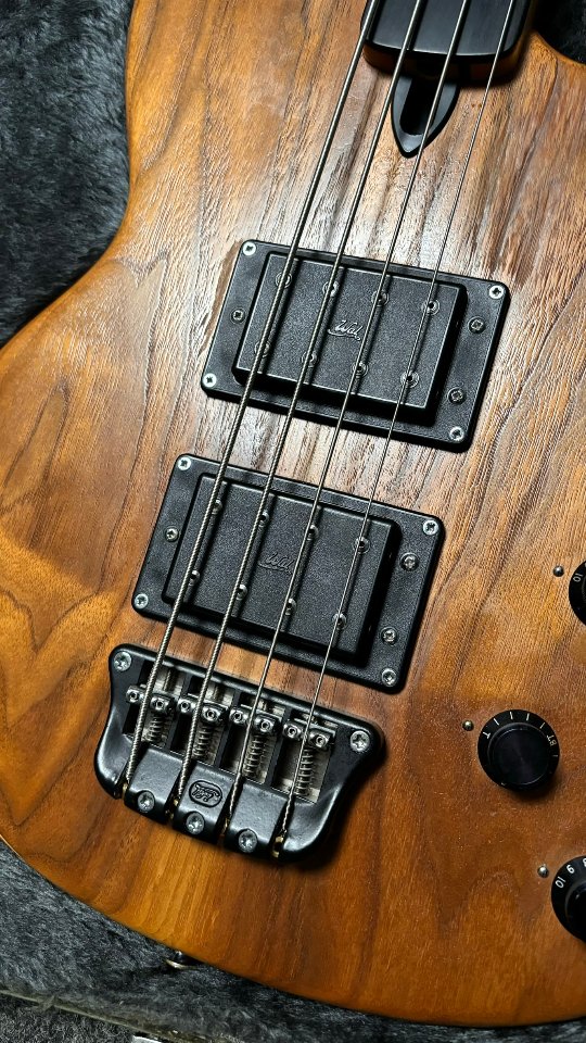 Fretless MKI built in 1989 featuring an American Walnut Facings, Brazilian Mahahgony core and indian ebony fretboard with side dots. This instrument comes from my personell collection in germany (Ruhrgebiet Area - Düsseldorf / Dortmund).