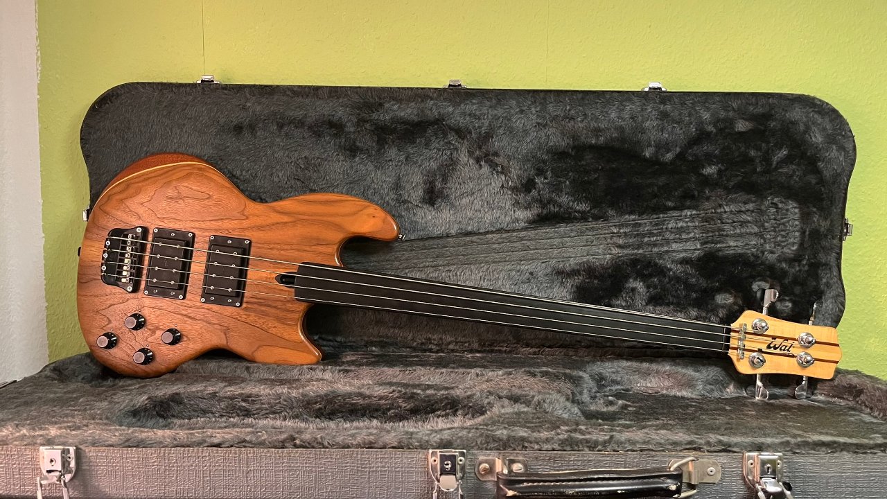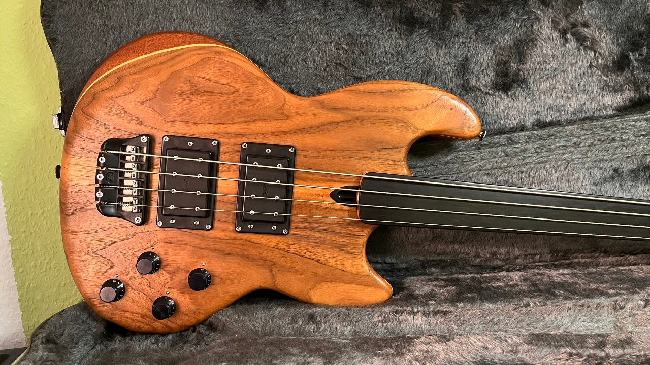 Fretless MKI aus dem Jahr 1989 mit american Walnut Facings, brasilianischem Mahagonikern und indischem Ebenholzgriffbrett mit Side Dots. Dieses Instrument stammt aus meiner persönlichen Sammlung.