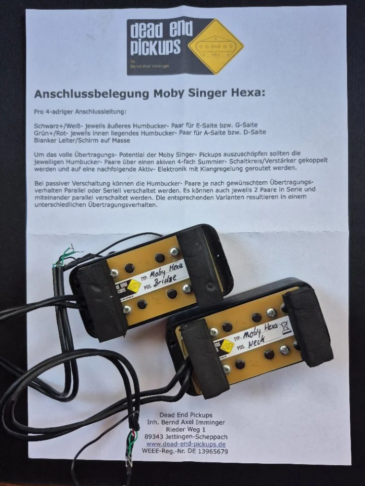 Verschaltet als Humbucker je Saite, jeweils separat als Kabel herausgeführt.