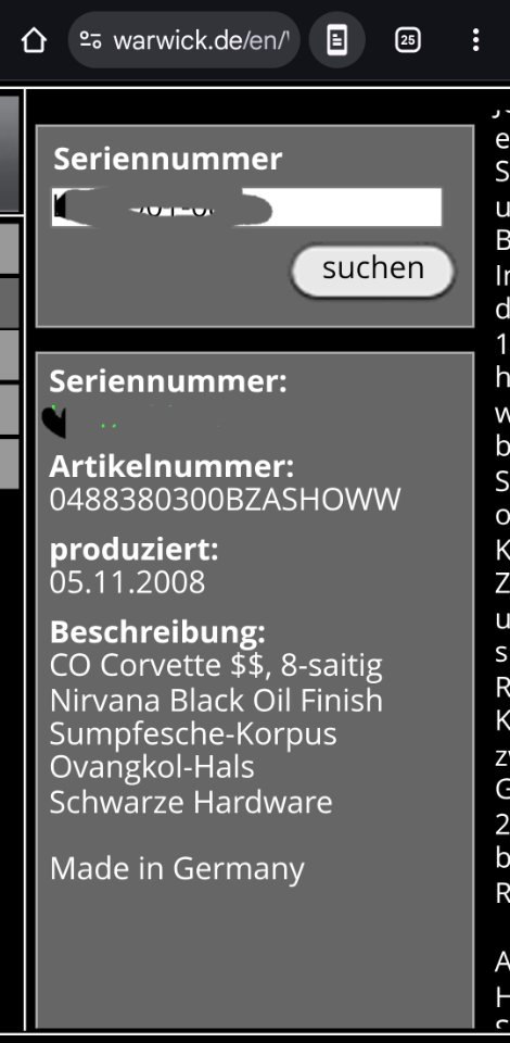 Warwick Corvette $$ 8 Saiter von 2008 incl. Koffer.