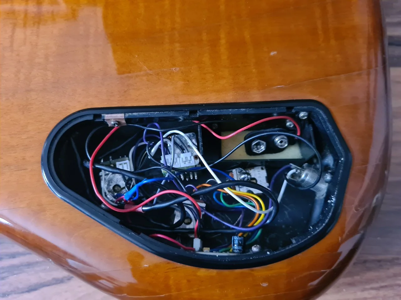 Trussrod läuft einwandfrei, ebenso die Elektronik. Die verbauten SD Basslines sorgen für einen knurrig, holzigen Sound.