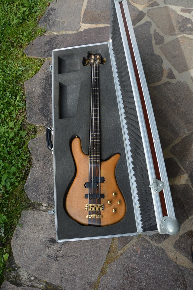 Mit dabei ist auf Wunsch (und bei Versand auf jeden Fall) ein Warwick-Flightcase, das auch grob aus der Zeit stammt.