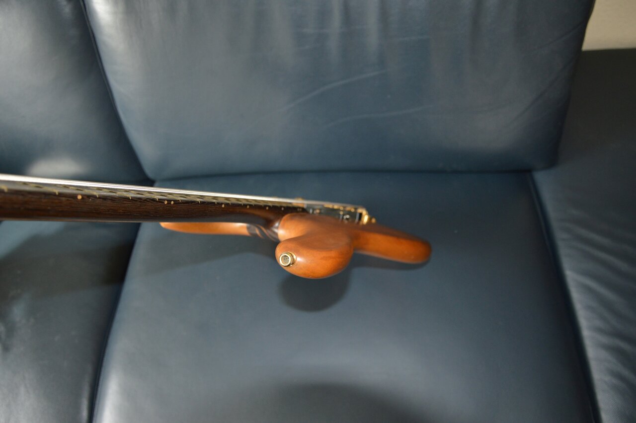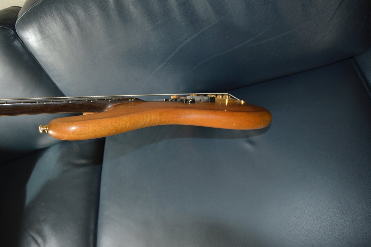 Seit den Fotos habe ich ihn noch mit Griffbrettöl gereinigt und mit Wachs gepflegt und die Pickups etwas höher gestellt (eine Feder hat gefehlt, ersetzt).
