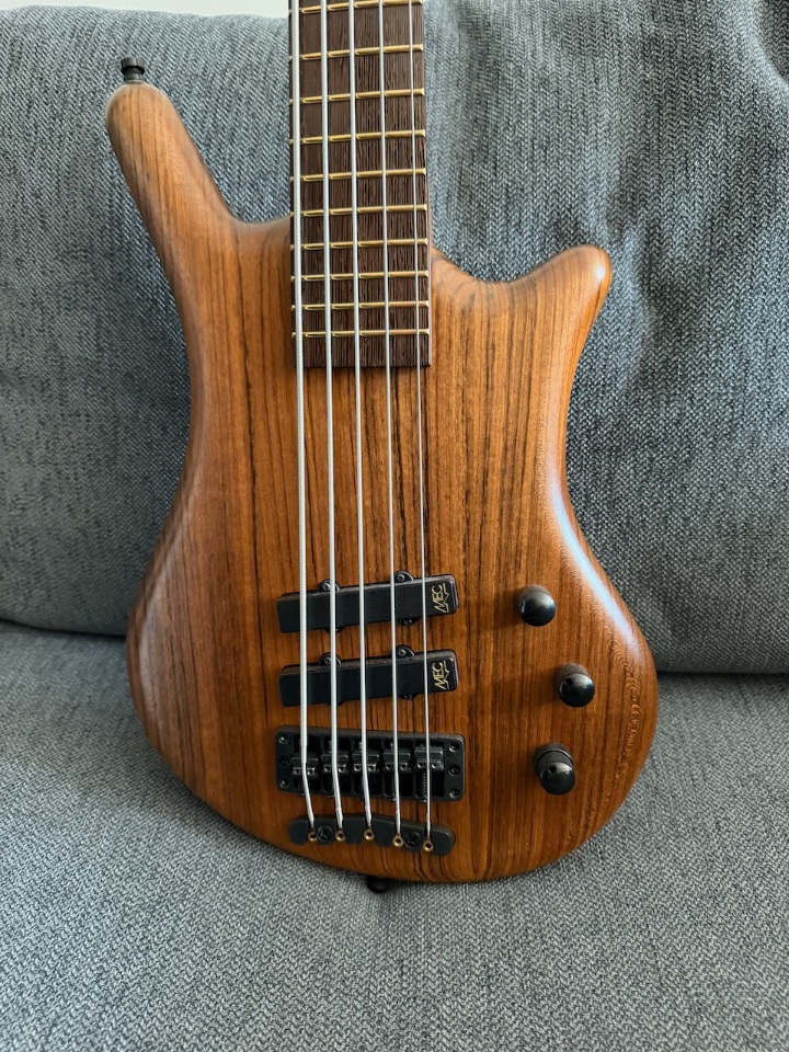 Der Thumb Bass hat einen unverkennbaren, growlenden Charakter mit starkem Tieftonanteil, der dennoch klar und definiert bleibt und mit einem mächtigen Punch aufwartet. Trotz vollem Mensurmaß und kleinem Korpus ist es ein wunderbar ausbalancierter Bass.