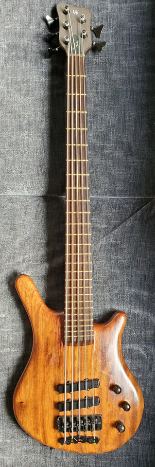Das Instrument war etwas runtergerockt, als ich den gekauft hab und ich habe einige Zeit mit Säubern, Polieren, Justieren etc verbracht. Ausserdem mussten einige Teile ersetzt werden (Schrauben an der Brücke, Federn unter den PUs), alles Originalteile von Warwick. Nu isse wieder schick und hat die Ästhetik, die ich von meinen Instrumenten erwarte