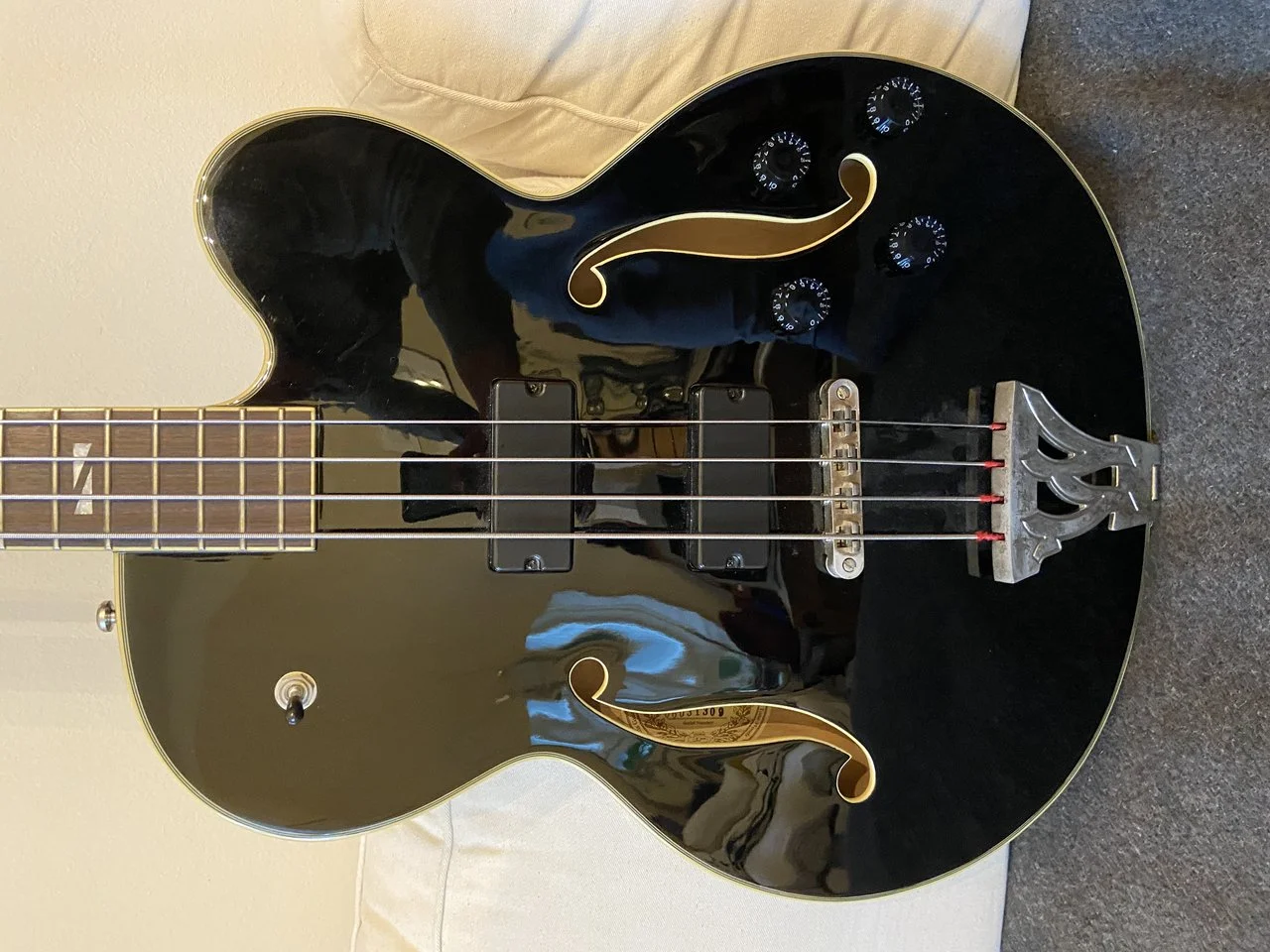 Verkaufe meinen wohnzimmergepflegten halbakustischen Washburn Bass. Bis auf ein paar Studiosessions hat er sein zu Hause nicht wirklich verlassen.