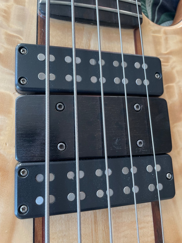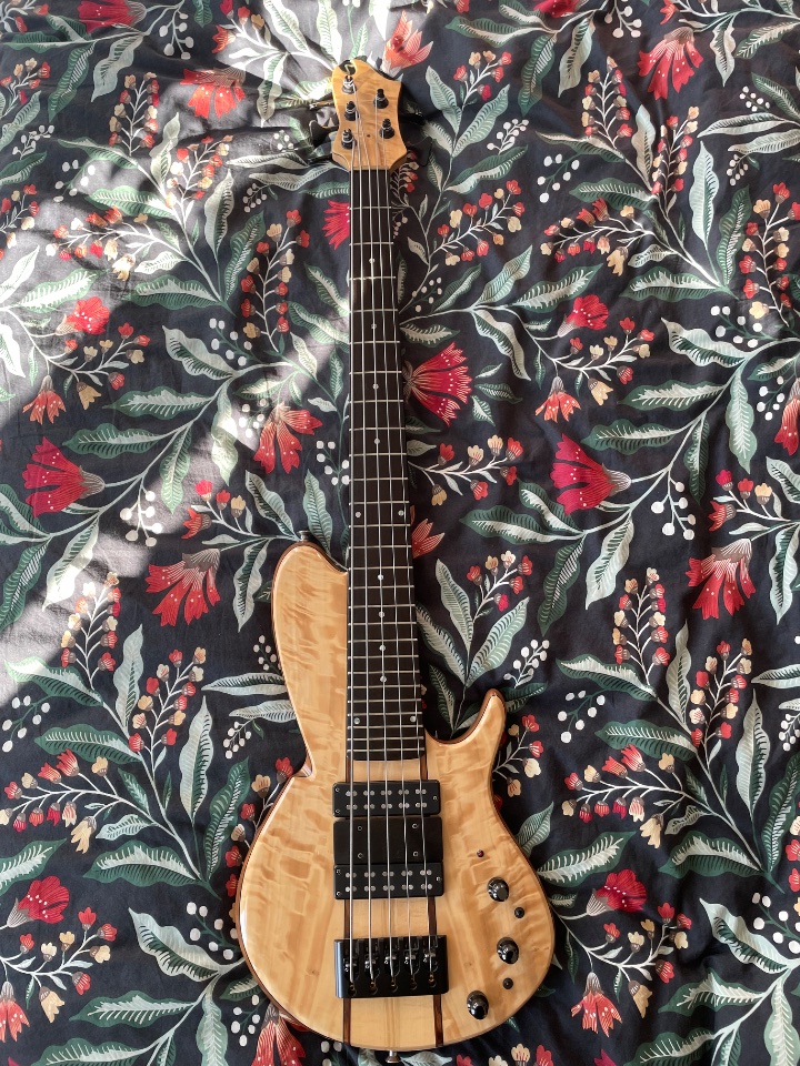 Verkaufe meinen Woods & Tronics Custom Single Cut 5-String Bass mit 33" Mensur.
