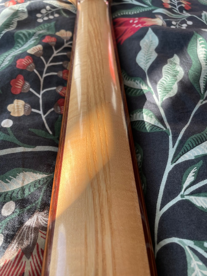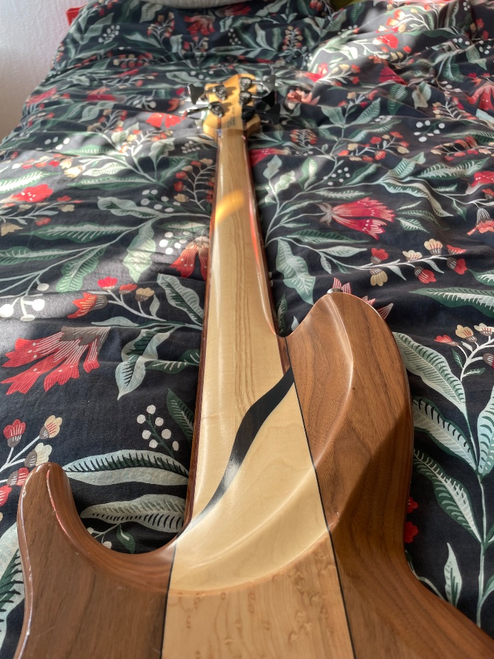 • 7-lagiger Hals: Zebrawood-Padouk-Maple-Ash-Maple-Padouk-Zebrawood