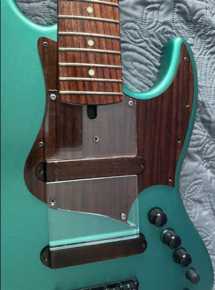 As you can see in one of the pictures there is a wooden pick guard.. not all the holes match and I do not want to drill extra holes in the bass.