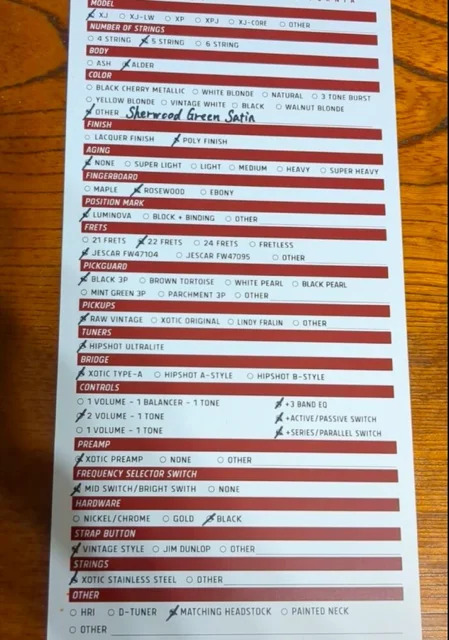 Xotic XJ1 5 string tuned E to high C.