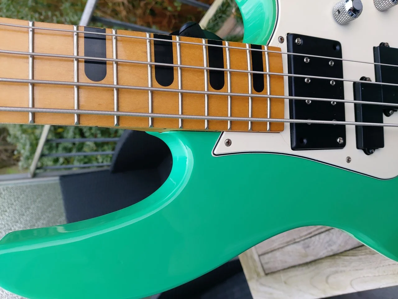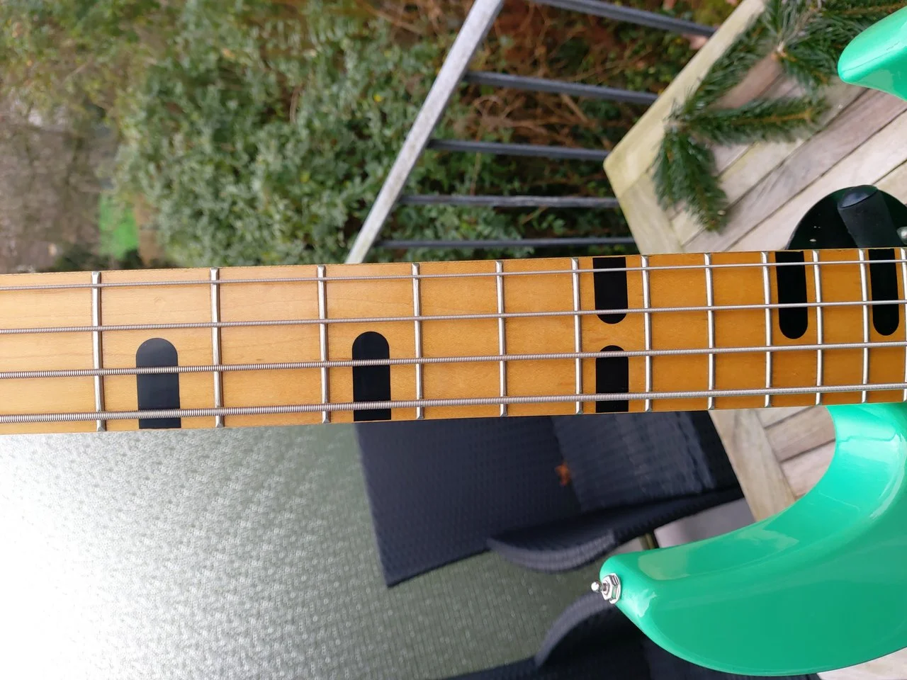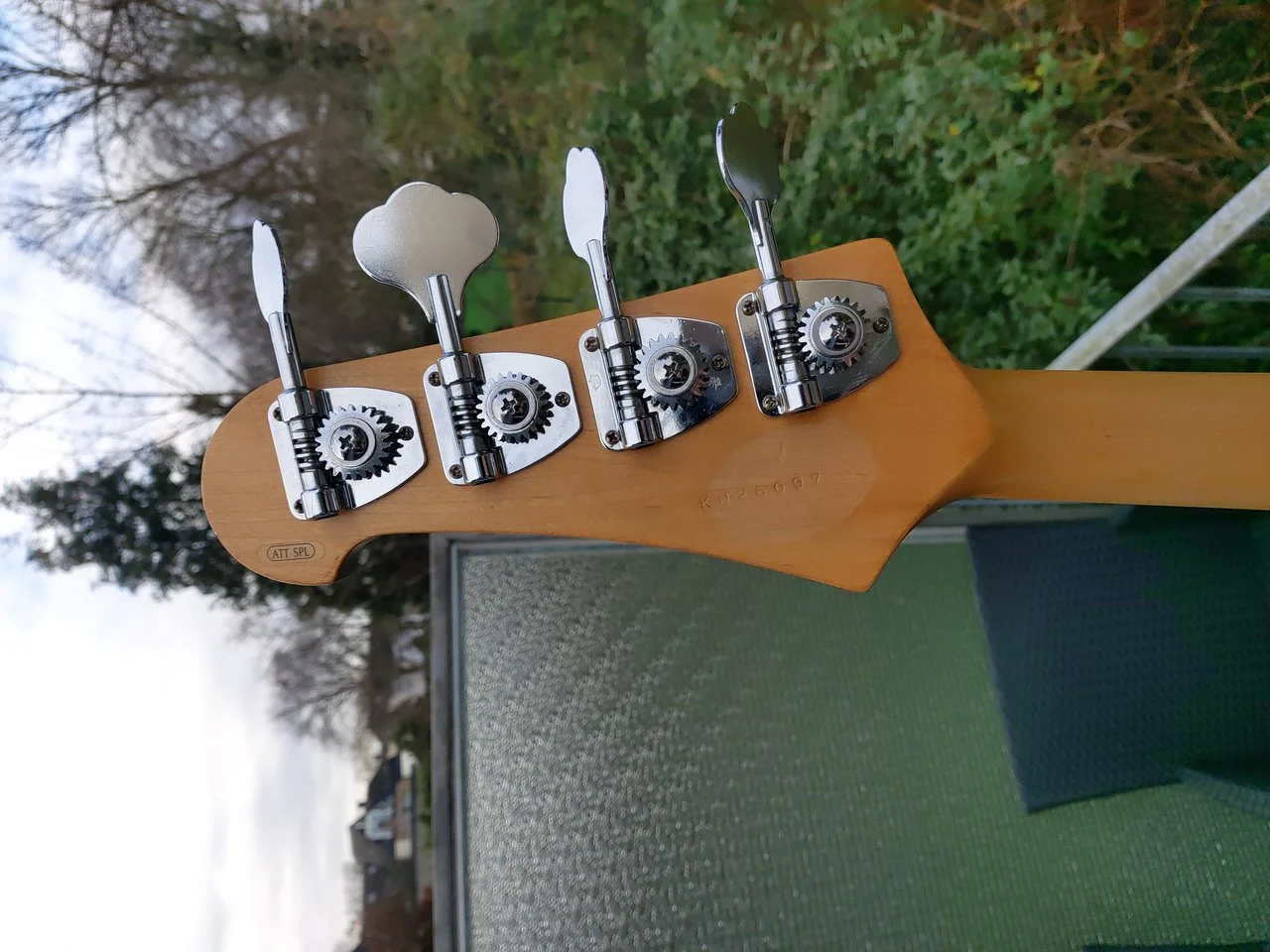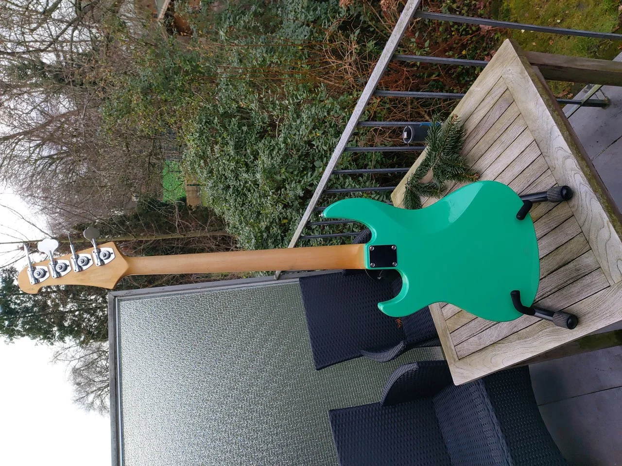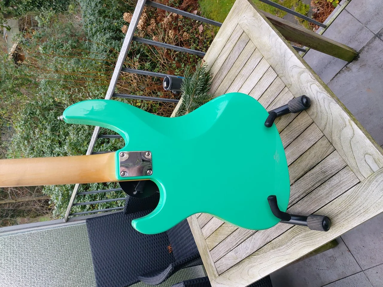Der Bass muss sich soundmäßig nicht hinter dem großen Bruder verstecken, da die entsprechenden Dimarzio Tonabnehmer (dp 120 und dp 146) nachgerüstet wurden. Unglaublich durchsetzungsfähiger Preci, gepaart mit einem Low-End (wenn man möchte) das die Wände wackeln. Der Bass ist mono.