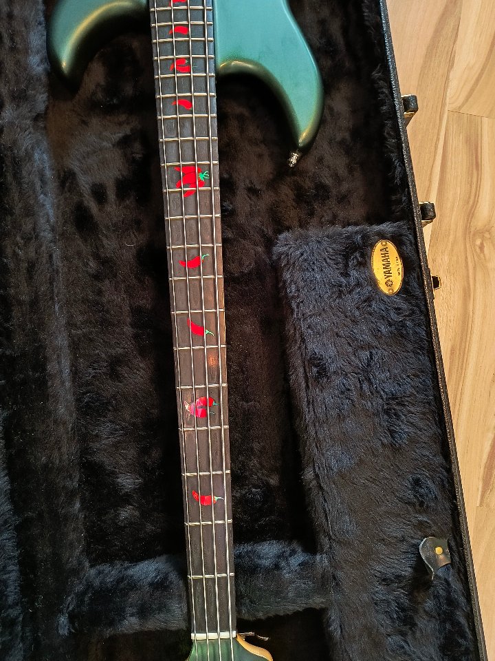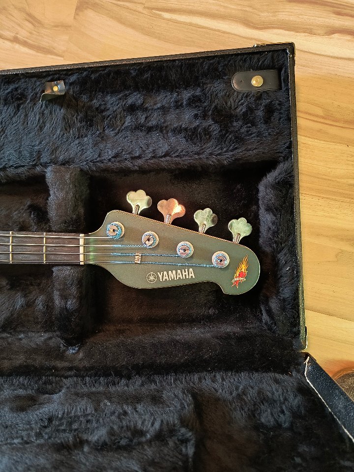 Yamaha BB 3000 MA inklusive original Koffer, MIJ. Signature Modell von Michael Anthony (Van Haalen, Chickfoot usw.). Originalzustand mit D-Tuner. Alles funktioniert. Altersbedingt ist der Lack stellenweise matt und hat Benutzungsspuren. Keine derben Kratzer oder Ähnliches. Bünde sind noch gut.
