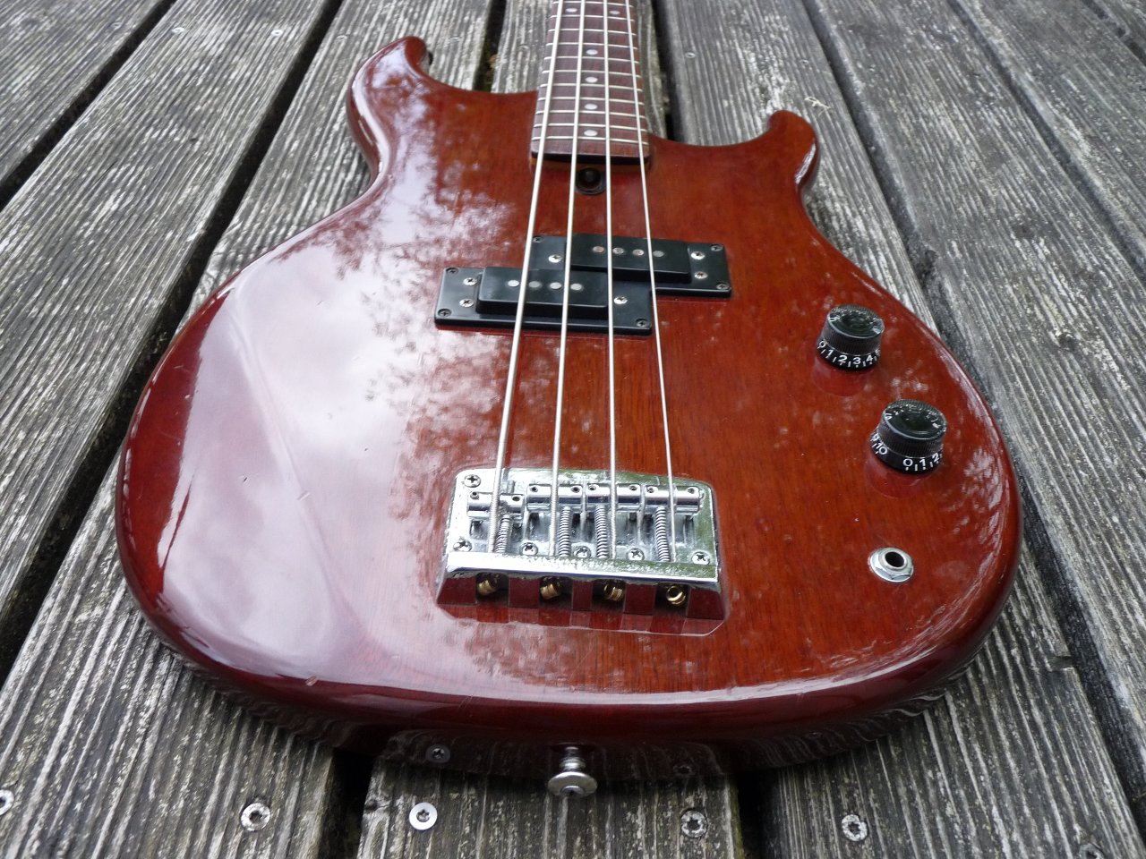 Der Bass hat altersbedingt ein paar Spuren, die man in den Bildern gut sieht. Tut der Spielfreude keinen Abbruch.