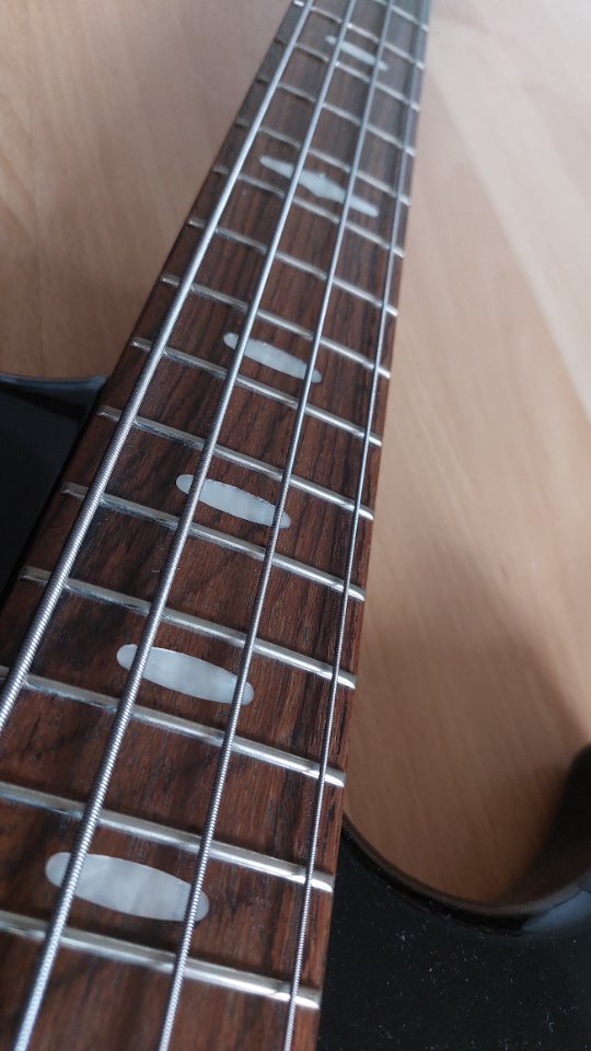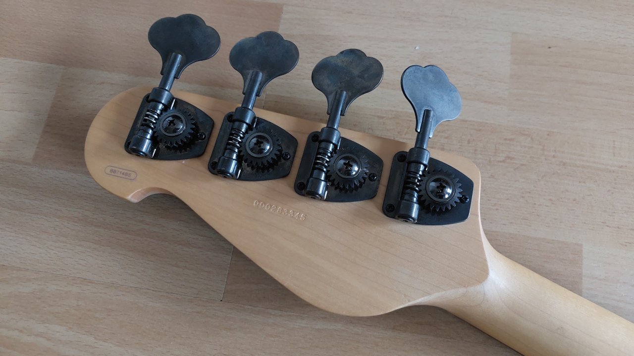 Der "kleine" Billy Sheehan Bass von Yamaha in sattem schwarz. Baujahr 2008, wie fast alle BS714, die mir untergekommen sind, und made in Indonesia. Auf doppelte Outputs wird verzichtet, der Bass ist mono und hat Volumen (Woofer), Tone (Woofer, push/pull für High Cut), Volumen (P-Bass). Er ist nicht einfach ein kleinerer Attitude, sondern hat die BB-Korpusform, einen handlicheren Hals, und einen wärmeren Ton. Zustand ist sehr gut mit wenigen Spielspuren, siehe Fotos.