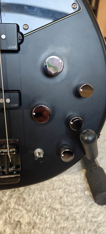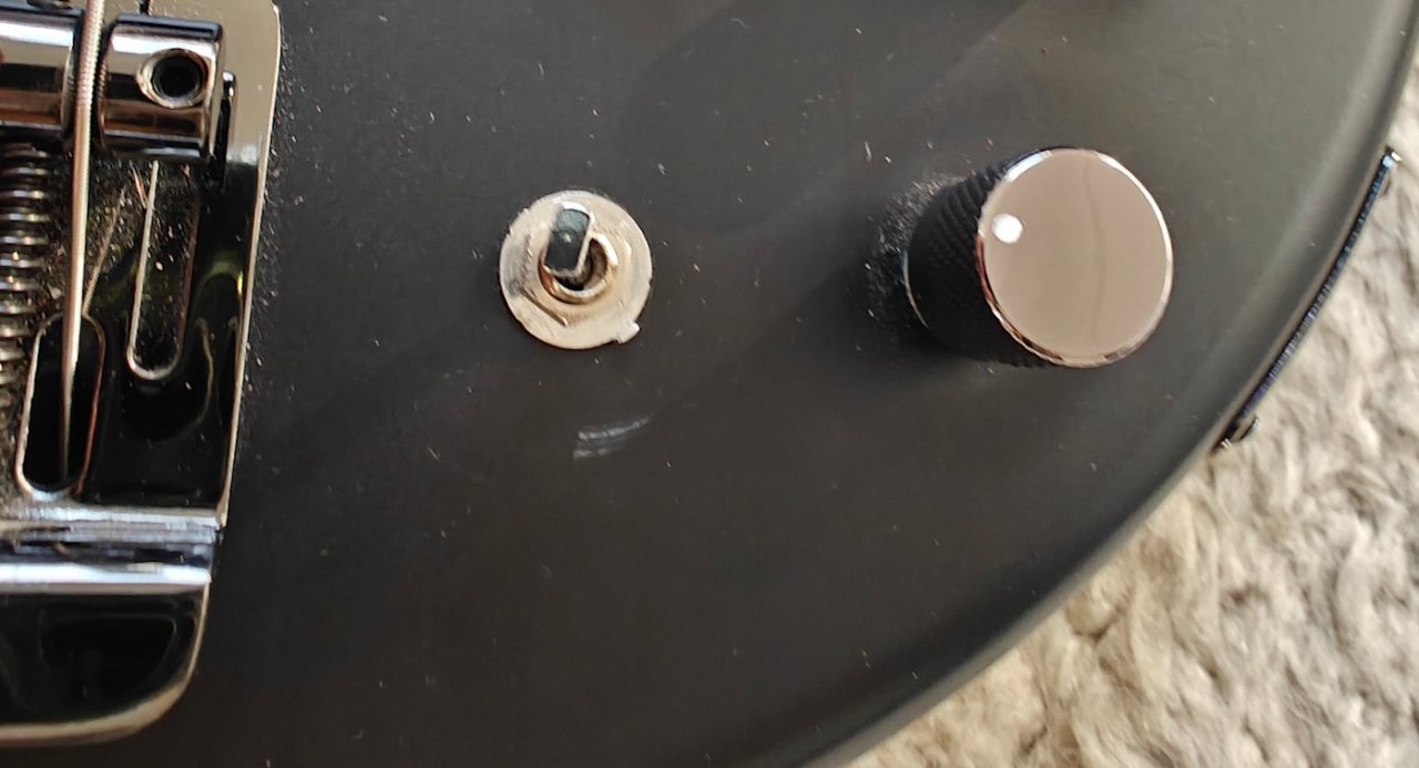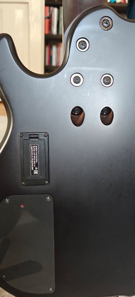 Der Zustand ist aus meiner Sicht durchgehend sehr gut. Lediglich ganz oben am Headstock gibt es ein paar kleinere Kratzer (wegen niedriger Decke im Übungsraum), ebenso am active-/passive-Switch (da bin ich beim Nachziehen der Überwurfmutter abgerutscht).