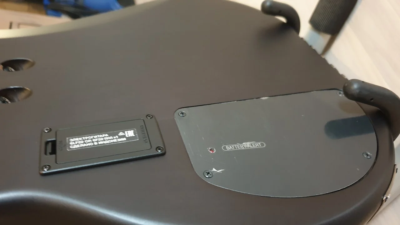 So gut wie keine Spielspuren. Es ist sogar noch die Schutzfolie auf dem Pickguard und dem Elektronikfach !