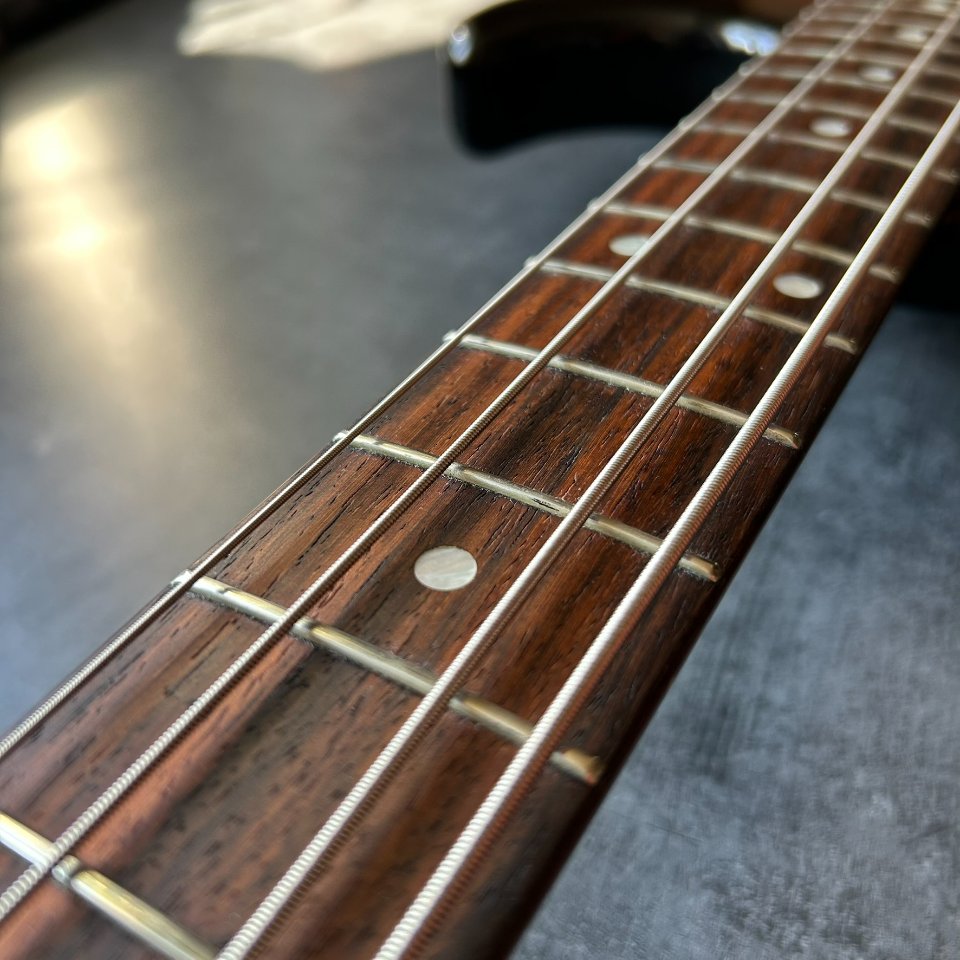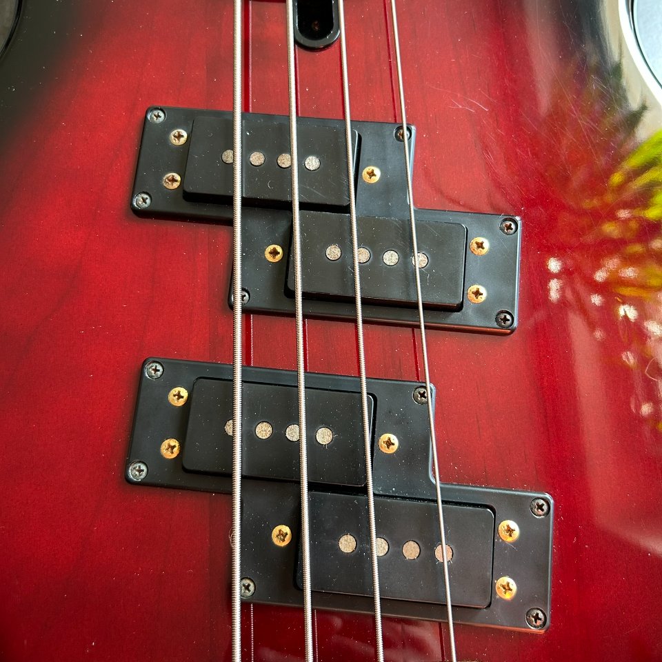 Manually, it's a typical Yamaha BB - for Broad Bass. Good ergonomics and access to high frets, a relatively thin but wide neck (43mm at the nut), and a decent weight of just over 4 kg. The alder body reveals pleasant grain through the translucent lacquer. The Japanese finish is of excellent quality, with excellent frets, holes, and fit. Full scale, 34 inches.