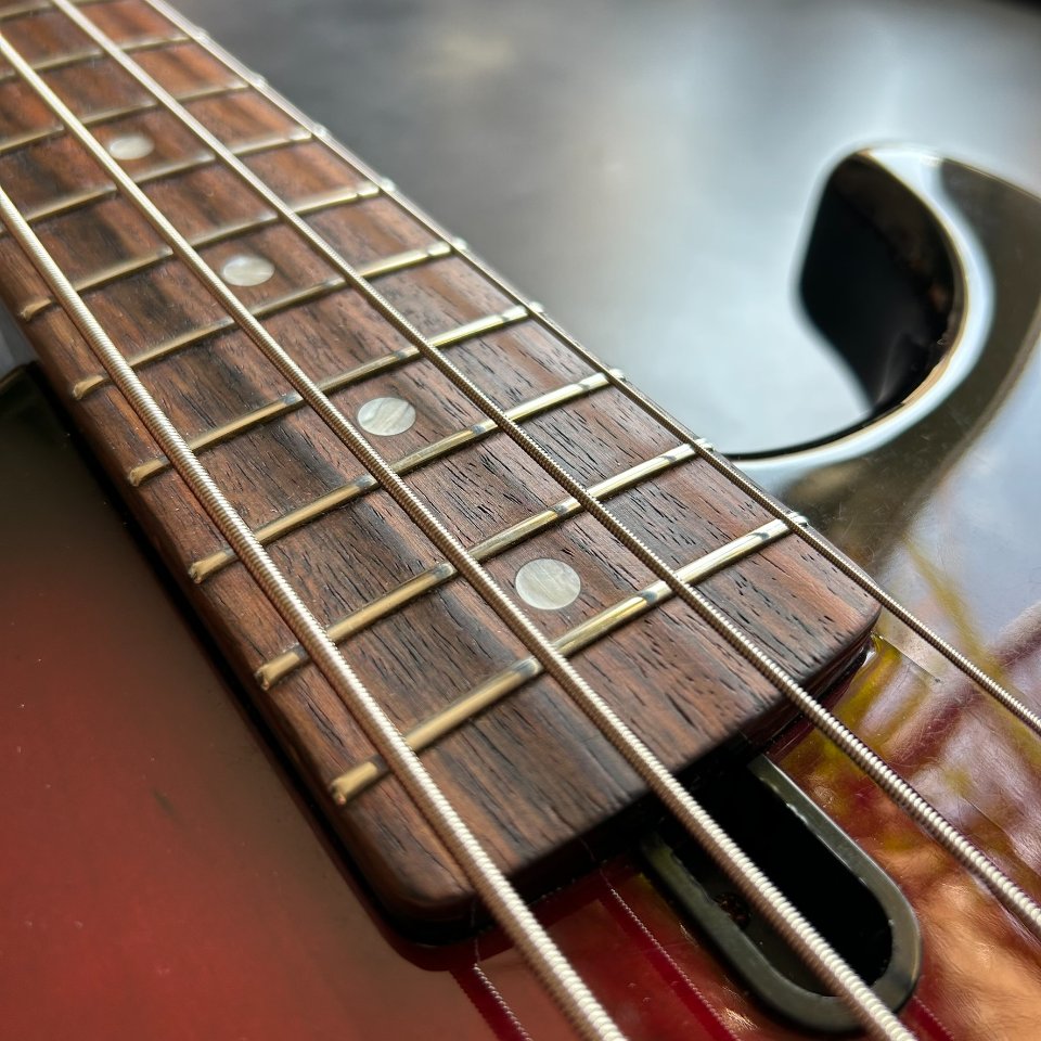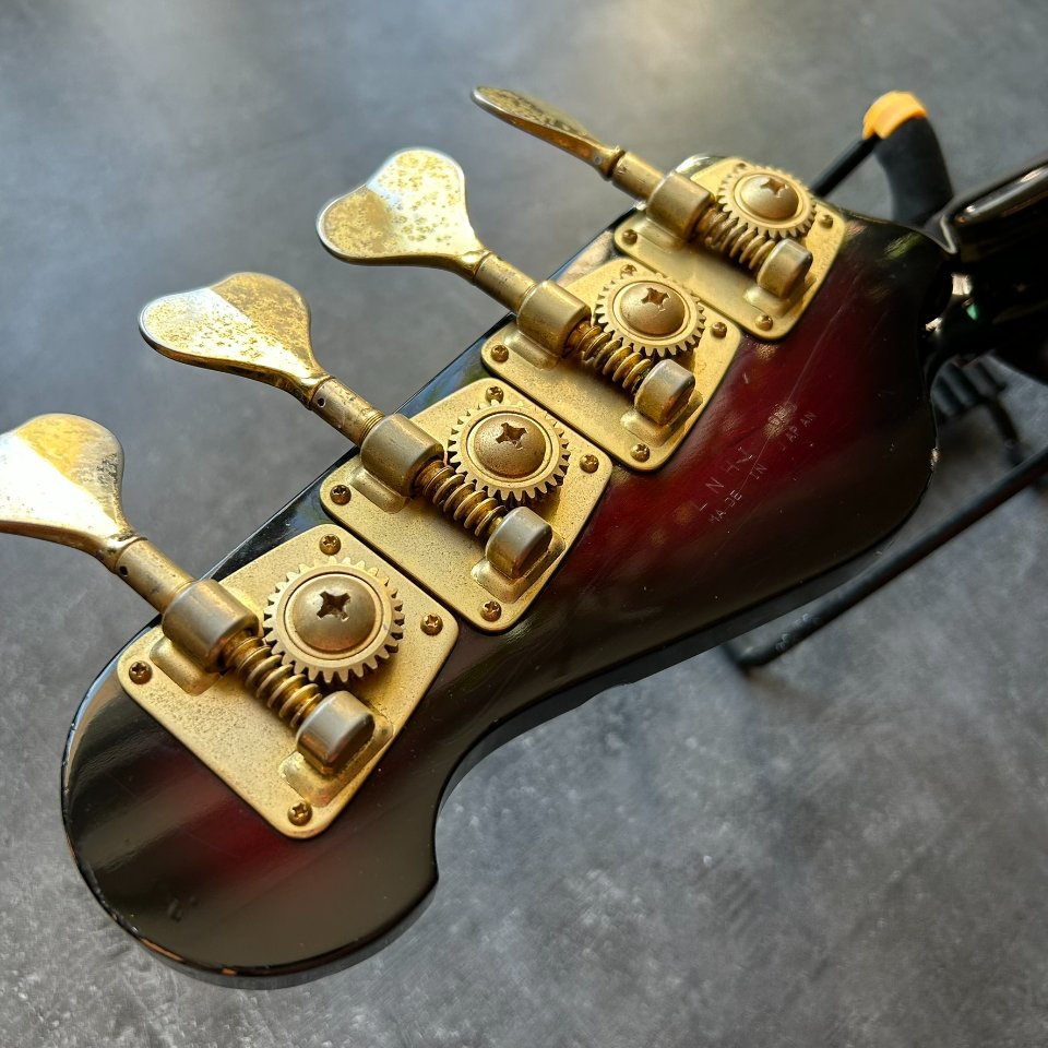The guitar is 40 years old and has some scratches, hardware marks, and dings, though none are major. Technically, it's in excellent condition: the truss rod works smoothly, the tuners stay in tune, intonation is great. The guitar has just had its frets polished and the electronics serviced by a luthier. The action is 1.5-1.7mm above the 12th fret, very low.