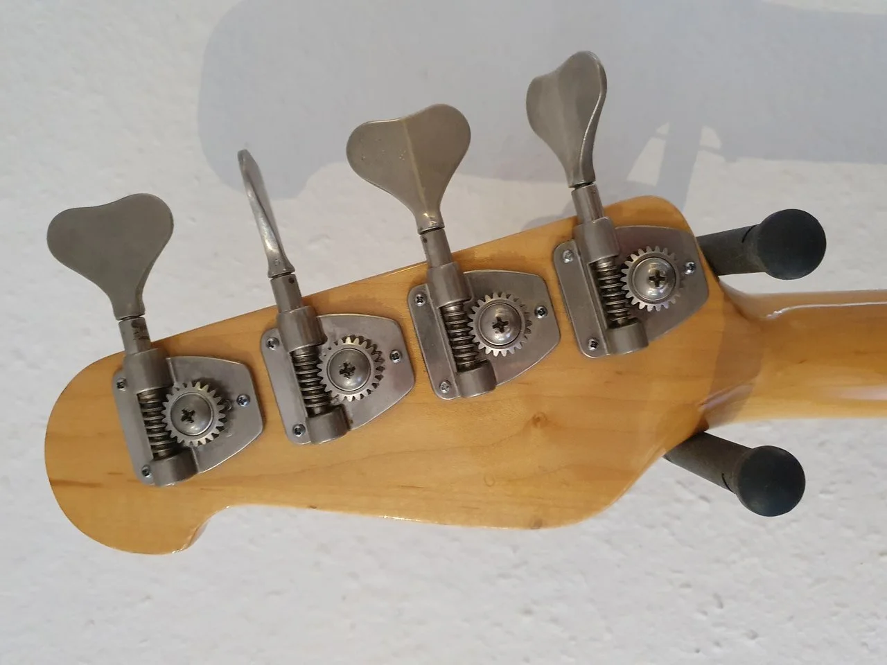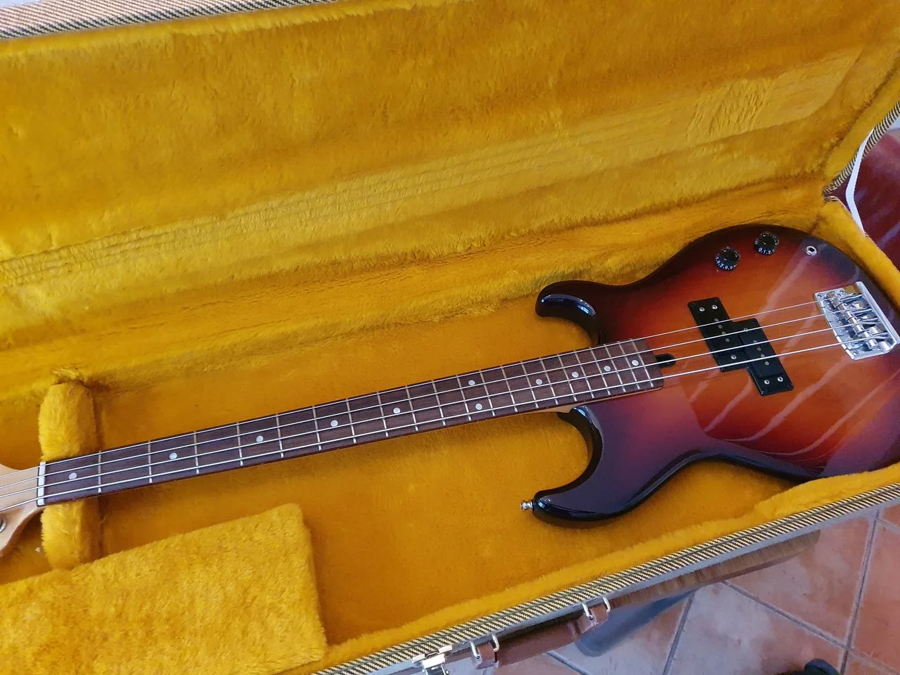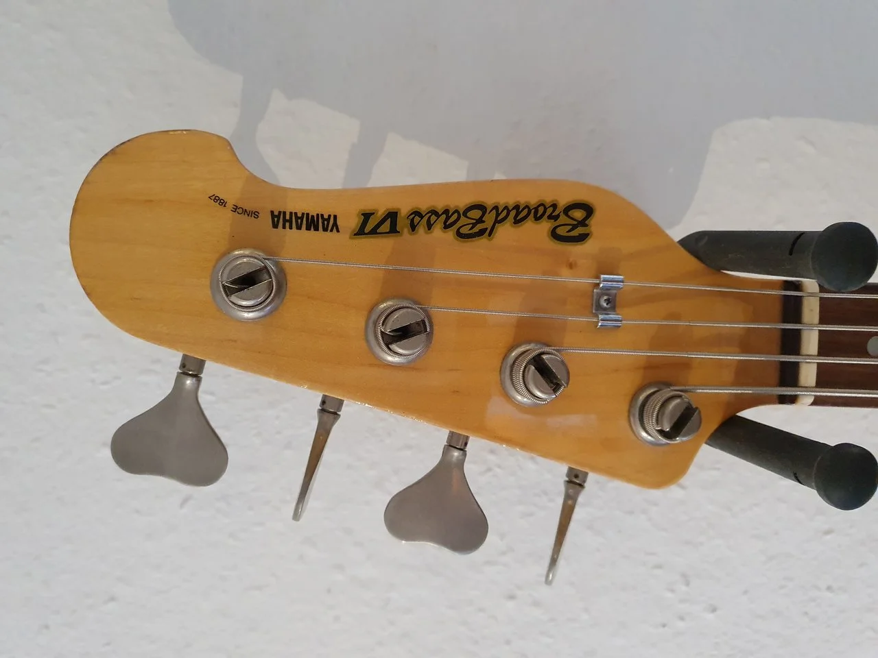 Yamaha Broad Bass, Made in Japan, von Anfang der 80‘er. Habe den Bass vor knapp einem Jahr gekauft. Er ist wunderschön und technisch wie optisch einwandfrei. Kaum ein Kratzer. Koffer ist dabei, der ist nicht mehr in bestem Zustand, aber für den Versand super.
