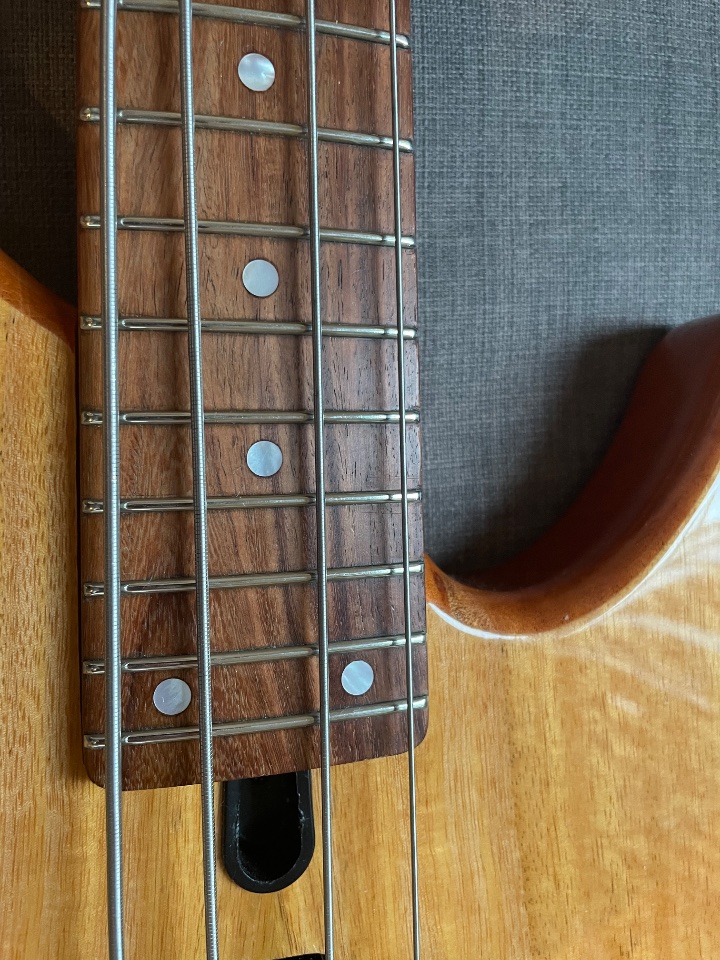Die beiden Pickups ergänzen sich sehr gut und sind Output technisch ausbalanciert und sind durch die Auskleidung mit Kuperfolie auch absolut brummfrei. Wer also auf der Suche nach einem P MM Konfiguration ist, hat hier ein sehr gutes Preisleistungsverhältnis und ein tollen Bass, an dem nichts mehr gemacht oder verbessert werden muss. Deshalb ist der Preis denke ich sehr fair, weil man sich hier auch noch die Umbauarbeiten spart. Die Verarbeitung des Halses ist auch super und es gibt keine scharfen Bundkanten oder ähnliches.