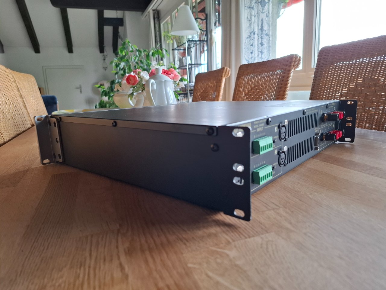 Sie taugt als PA Endstufe, bietet sich aber auch als Musikinstrumentenverstärker an.