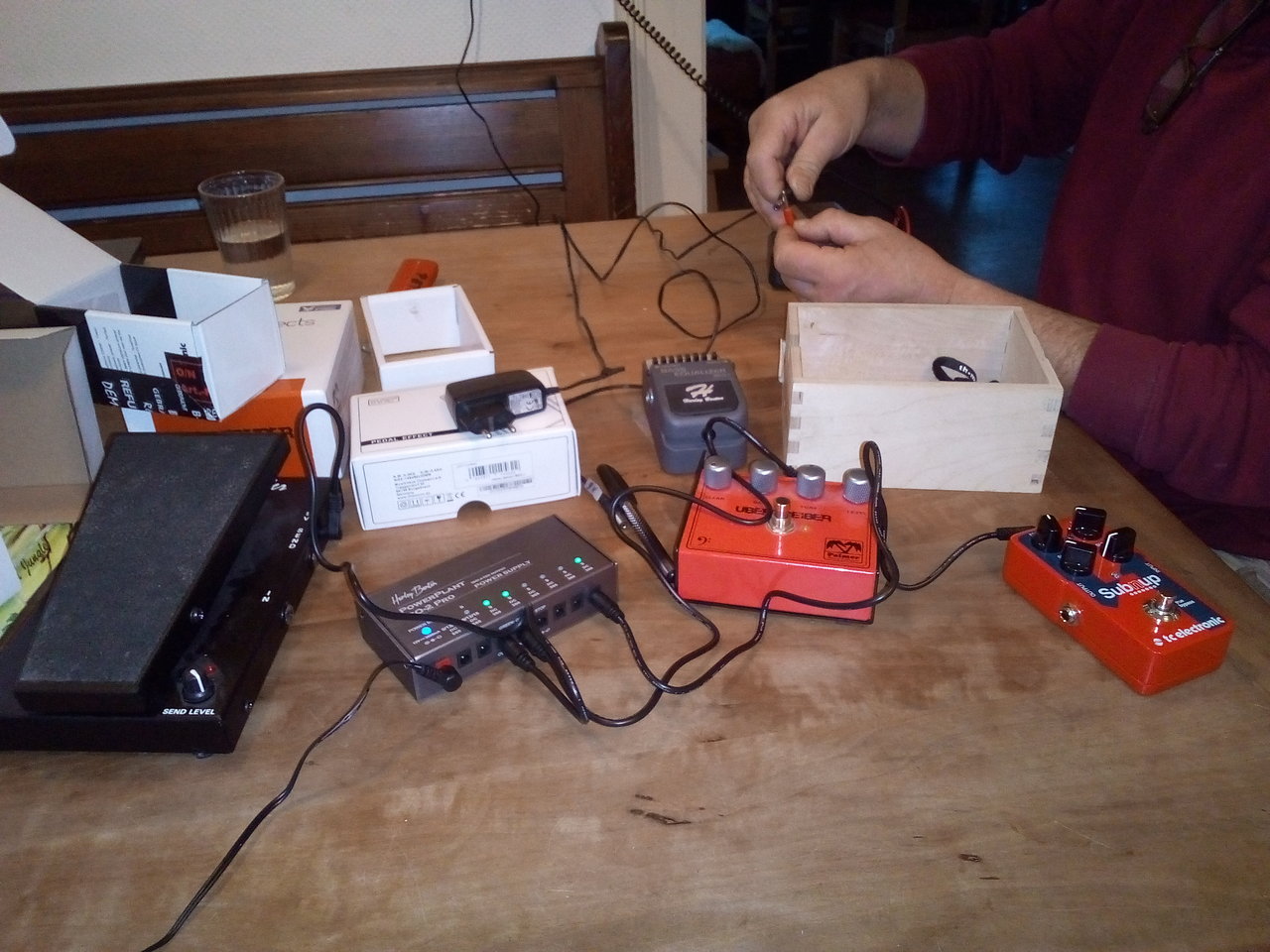 Dazu kommt, dass dein Amp (hoffentlich!) über einen Schutzleiter verfügt. Wenn der ans Board angeschlossen ist, wirst du nichts mehr messen können, da dein Instrument/Effekt-Ground auf PE liegt. Probiers aus!