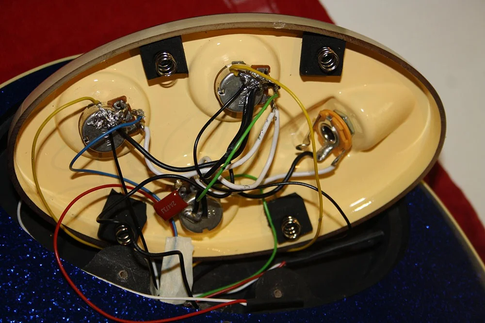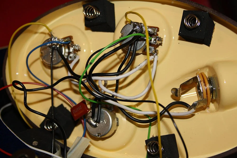 ich habe ein Problem mit meinem Italia Maranello. Vor kurzem habe ich mir bei Bassculture 2 neue Humbucker bauen lassen, welche ich auch problemlos vor ca. 2 Monaten eingebaut habe. Damals war auch schon ein hochfrequentes Brummen zu hören, was mich bei der Bandprobe allerdings nicht sonderlich gestört hat. Nun sind wir aber dabei Aufnahmen zu machen und da stört das Brummen extrem. Wenn ich die Finger auf die Saiten lege wird der Bass geerdet und das Brummen geht weitestgehend weg, aber wenn ich mal eine Saite ausklingen lasse ist das Problem sofort wieder da. Ich habe jetzt mehrere verschiedene Möglichkeiten zum verlöten ausprobiert, aber leider ist in jeder möglichen Stellung ein Rauschen zu hören gewesen. Hat vielleicht jemand von euch einen Tipp für mich was ich dagegen machen kann? Anbei noch zwei Bilder von der Verlötung die vielleicht hilfreich sein kann. Bei Bassculture habe ich eben schon angerufen, da geht leider keiner ran.