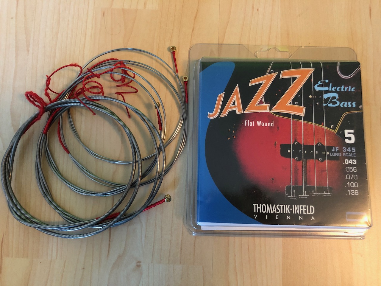 verkaufe 2 fast neue Saitensätze, Thomastik-Infeld Flatwound 5-Saiter.
