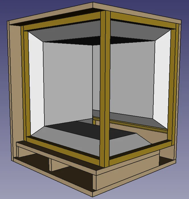 Wozu der Rahmen? Ich verstehe daß man ein Leistenrahmen braucht um die Frontplatte irgendwie herausnehmbar zu gestalten. Ansonsten würde ich keinen Rahmen verwenden. Nicht bei der Größe. Stattdessen lieber bei Bedarf in die Ecken nach dem Leimen Dreiecksleisten einleimen. Aber nur wenn's nicht dicht wird. Lieber die Leisten hinterher nehmen um die Steifigkeit der Wände zu erhöhen. Dann aber schräg auf die Fläche und nicht am Rand.