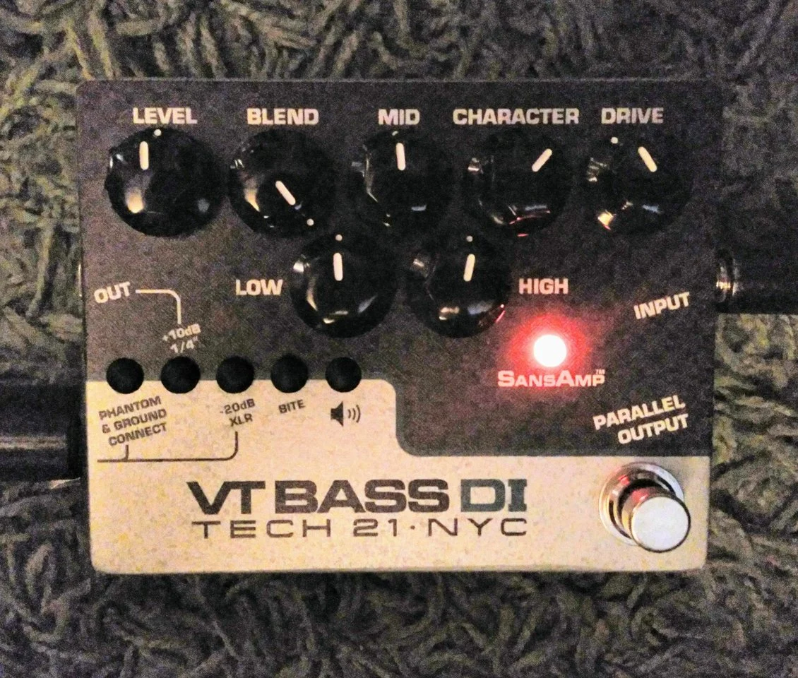 Signalweg: Bass > Input VT Bass DI Nr.1 > parallel Out > Input VT Bass DI Nr.2 > beide XLR-Outputs parallel (mit kleiner passiver DIY Connection-Box) in einen Kanal vom Mischpult mit Phantompower.