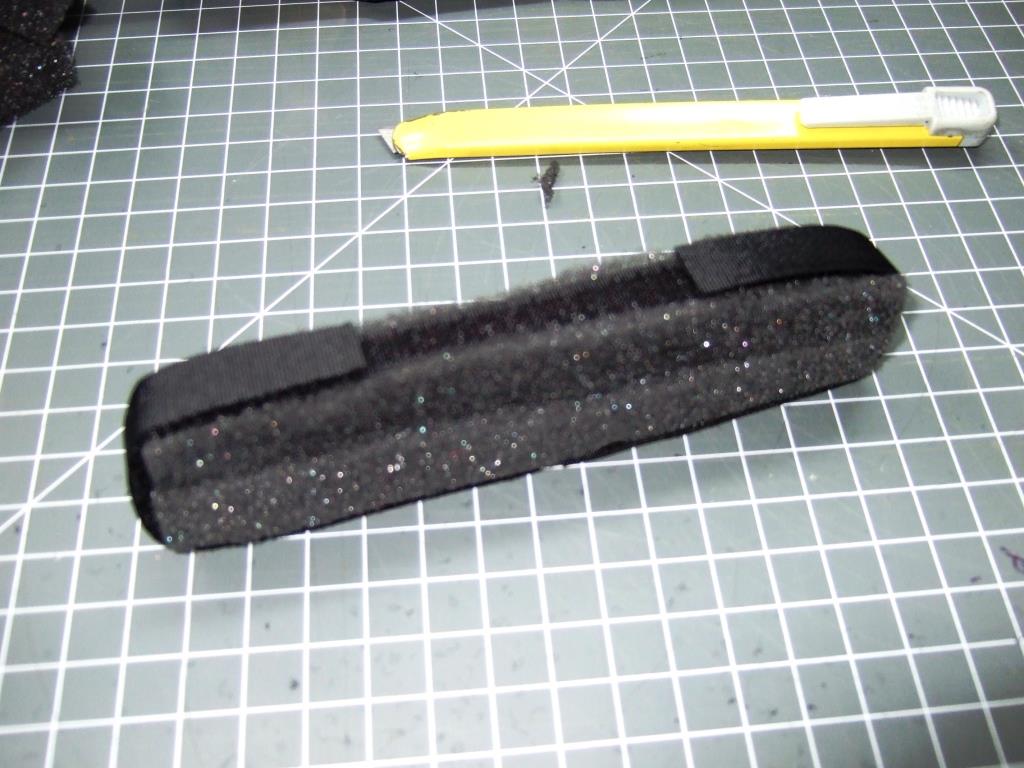 Während der Kleber trocket, das Flauschband zuschneiden, Ober- und Unterseite zusammenkletten, fertig.
