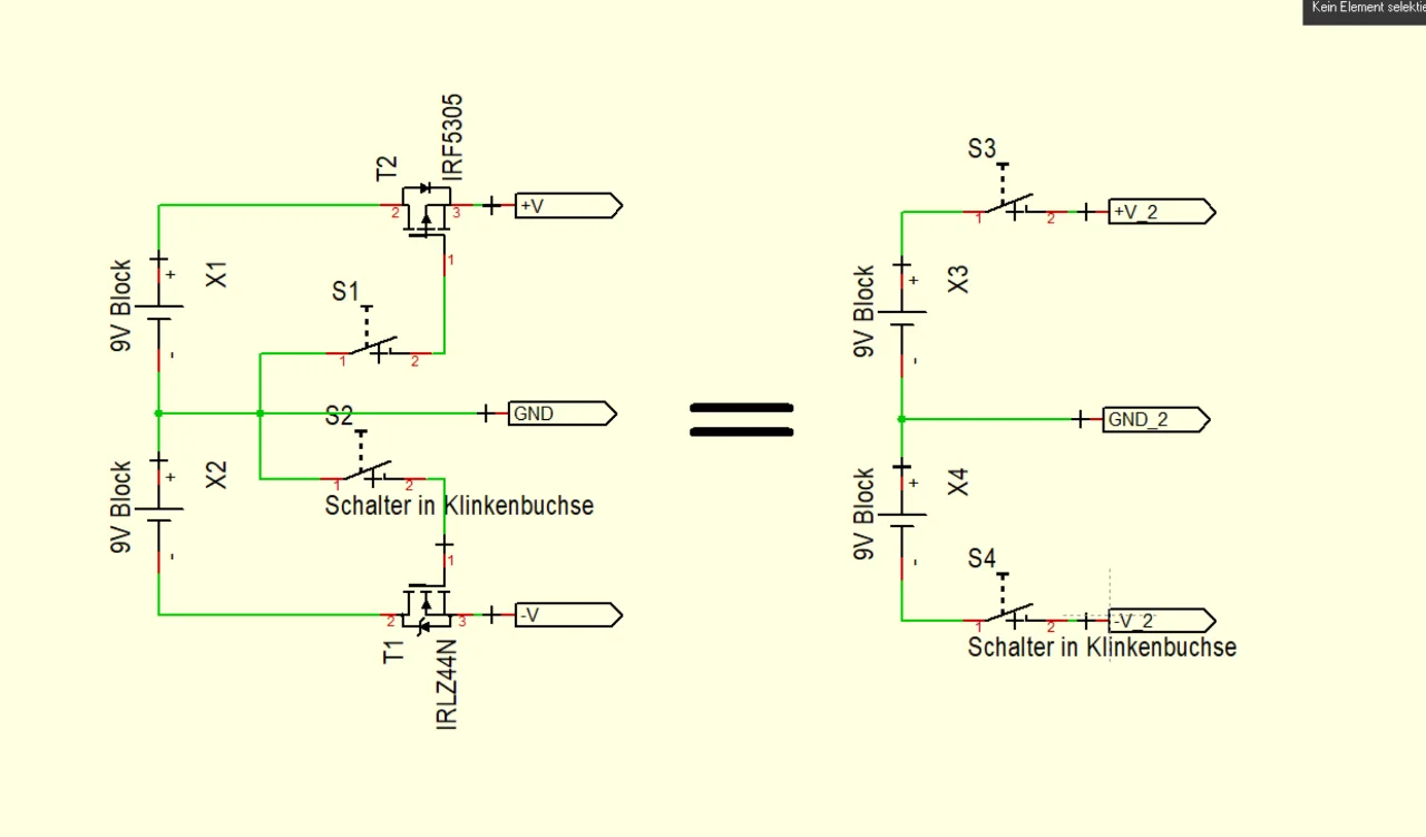 Die Buchse schaltet auch meine beiden 9V (18V) Batterien!