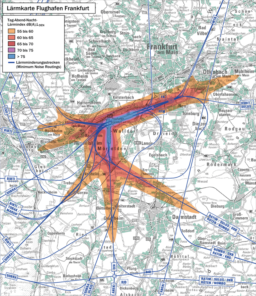 WAS HAST DU GESAGT? WARTE MAL BIS DER FLIEGER VORBEI IST!Hier eine Karte der Landstriche um den Frankfurter Flughafen, die m.E. für unbewohnbar erklärt werden müßten:
