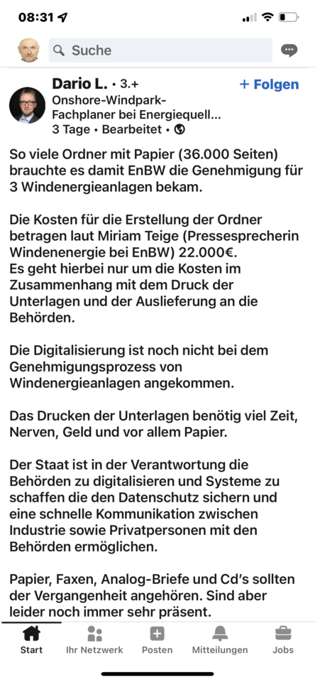 Diese 36000 Seiten liest auf dem Amt doch keiner durch. Wahrscheinlich sind doch bloß ein Promille dieser Seiten auf das konkrete Projekt bezogen. Der meiste Kram dürfte Zeug sein, das sich bei jedem Antrag wiederholt. Was für eine Verschwendung von Geld, Human Resources und Material. Kein Wunder, dass selbst die Ämter durch solche Anträge völlig überfordert sind. Es ist wohl auch an der Zeit, sich mal auf das Wesentliche zu konzentrieren, und Selbstverständlichkeiten und Unwichtiges mal wegzulassen. Wir kontrollieren und verwalten uns hier in Deutschland so langsam zu Tode. Kein Wunder, dass hier jede echte Weiterentwicklung Jahrzehnte dauert.