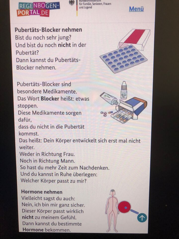 Vielleicht wäre es mal sinnvoller wenn Du mal nachforschen würdest bevor Du so etwas postest. Welches Kind bekommt denn in Deutschland Pubertätsblocker ohne das es vorher zig Ärzte konsultiert hat, die Alle dieses Kind über Risiko- und Nebenwirkungen aufklären? Sorry, aber das zu leugnen ist Schwachsinn hoch zehn.Das