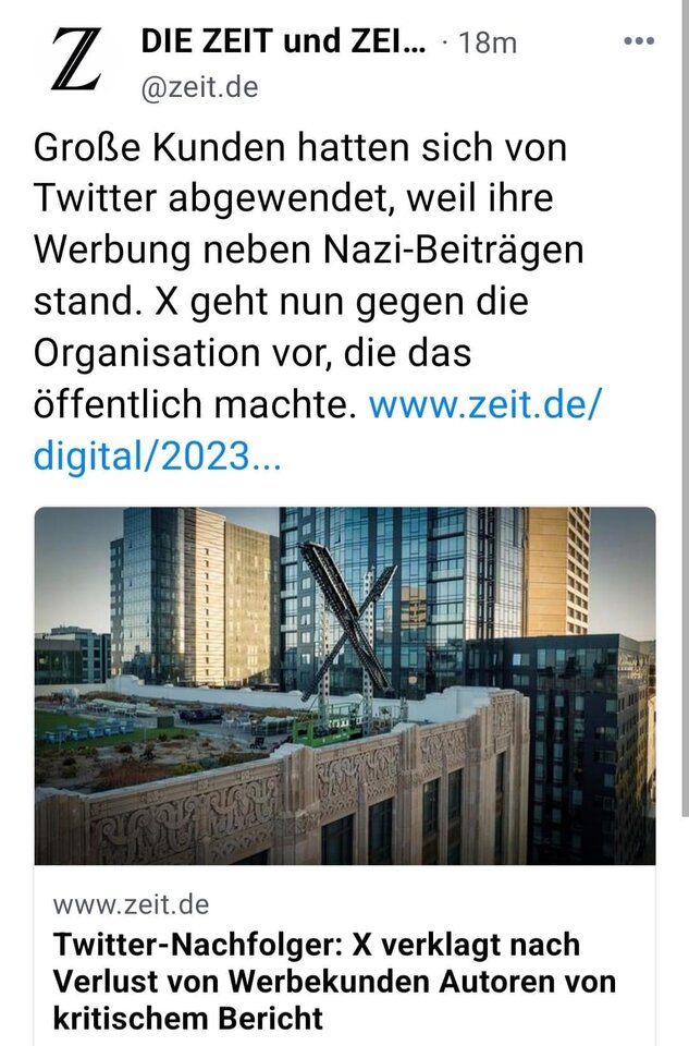 Musk hat ebenso wie Zuckerberg und andere eine große Sache noch gar nicht vernommen: der Hype mit den sozialen Medien oder genauer gesagt, mit der Werbung dort ist ziemlich vorbei. Gemessen an dem, was tatsächlich an Werbewirkung herauskommt, wenn man auf diesen Plattformen Anzeigen schaltet, sind die völlig überteuert. Diese Preismodelle werden auch dadurch unterlaufen, dass Influencer dort unter dem Radar fliegen und für weniger Geld mehr Wirkung erreichen. Im Moment weiß keiner so recht, wo die Werbebranche eigentlich hinwandert, denn normale Anzeigen-Werbung auf normalen Medien ist ultrateuer, der Markt der Influencer ist überlaufen, weil jeder Idiot heute Influencer ist. (manchmal ist es sogar Bedingung), und wo soll man noch Werbung machen? Google Ads ist eine Gelddruckmaschine, die auch nicht mehr viel bringt. Und für das, was sie bringt, ist sie ebenfalls viel zu teuer. Für kleine, lokale Unternehmen sind da Postwurfsendungen oder Handzettel schon ökonomischer. Ich überlege in meinem Job, ob wir mal wieder ein richtiges Mailing per Post machen und es bloß nicht wie eine Werbesendung aussehen lassen sondern wir einen normalen Brief. Newsletter und E-Mails liest eh keine Sau mehr.