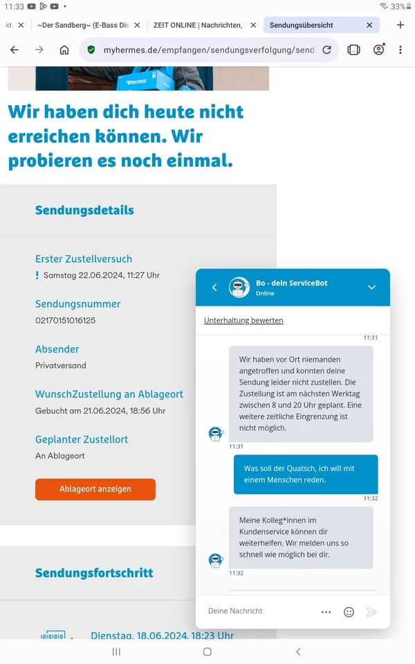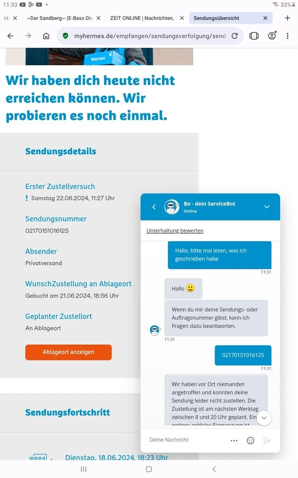 Daraufhin habe ich den Bot probiert, seht selbst, wie sinnvoll diese Konversation war