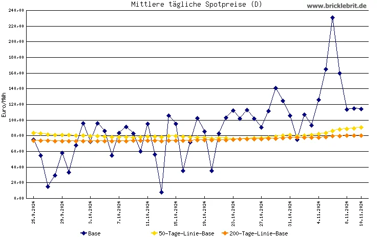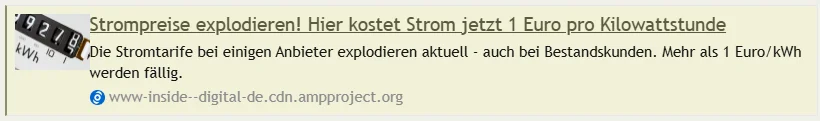 Wo soll das denn der Fall sein? Verivox gibt Arbeitspreise um 30ct/kWh an.Der Strompreis hat am Markt die 1€/kwh überschritten