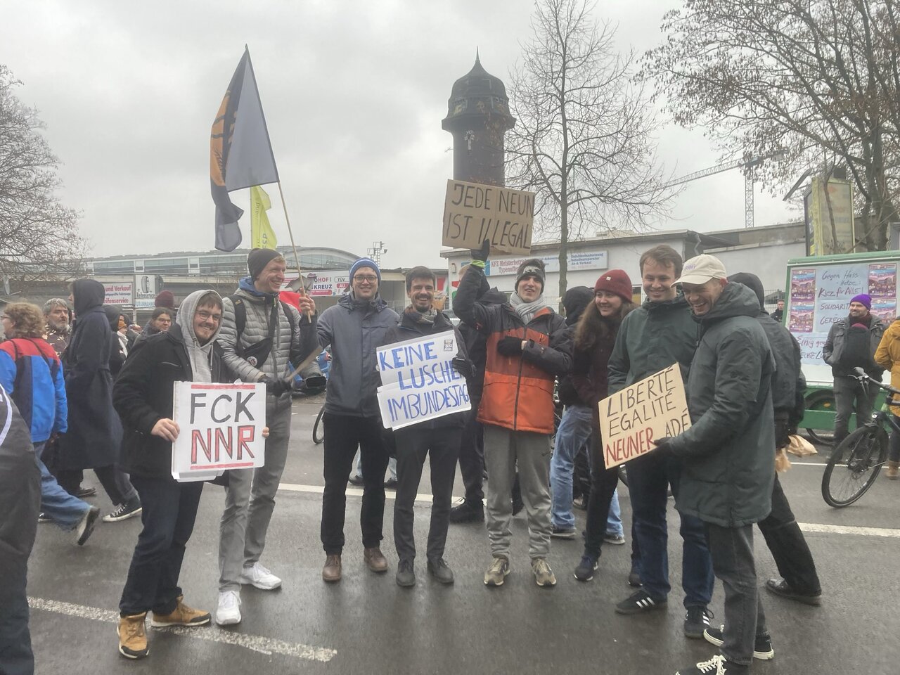 Man beachte die Plakate: "Keine Luschen im Bundestag" und "F(u)CK N(eu)N(e)R" (in der Tradition "FCK NZS").